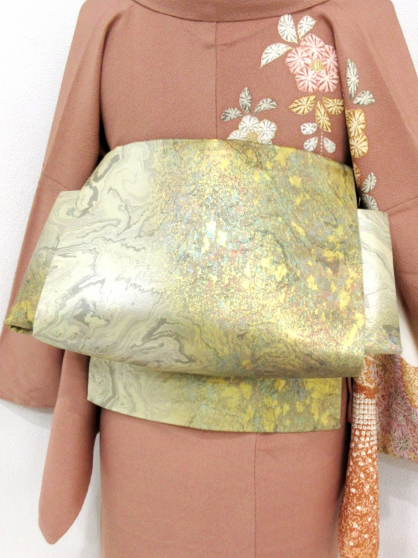 ■雅星■超美!!ゴールド系*墨流し 切り紙散らし 焼箔暈し♪正絹六通《袋帯》