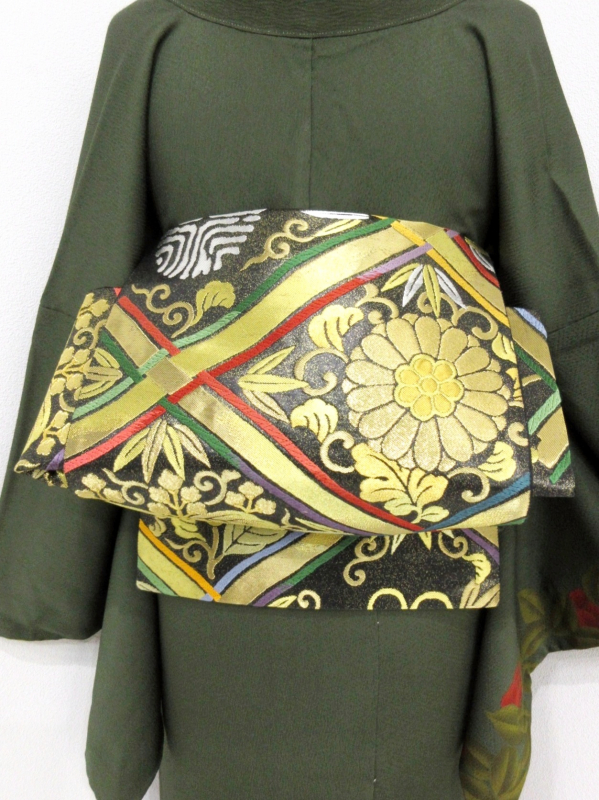 ■雅星■超美!!ラメブラック*箔織 唐織 格天井 吉祥文様♪正絹六通《袋帯》