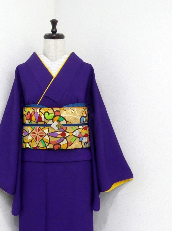 〓雅星〓超美!!グレープ*比翼仕立て風 飾り文入 洗える色無地 袷 裄66.5丈168ロング