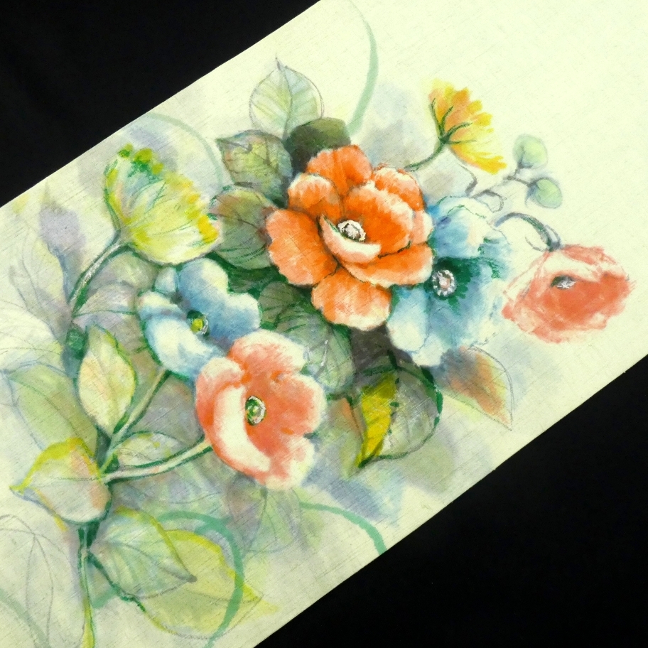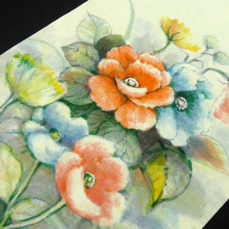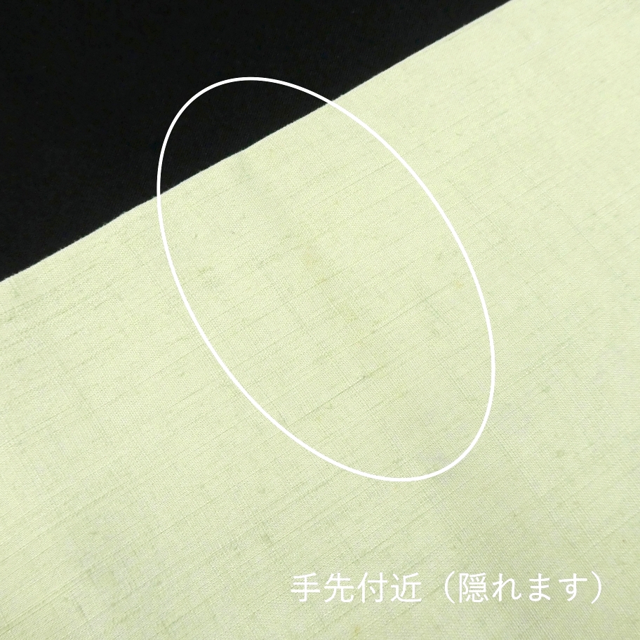 〓雅星〓美品!!アップルグリーン*紬地 花模様♪正絹九寸 染め《名古屋帯》
