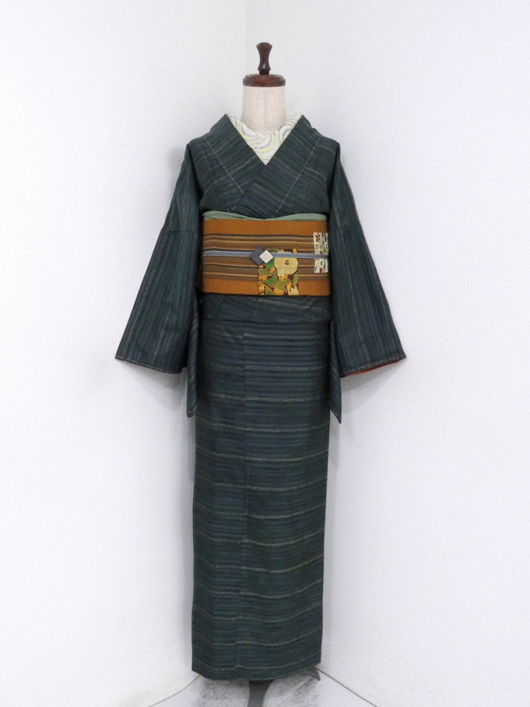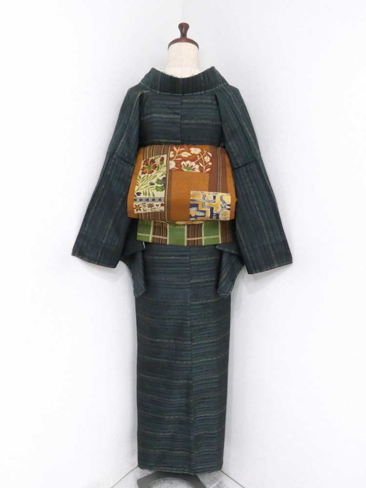 ◆雅星◆未使用超美!!青緑系*横段 シマシマ 正絹紬 袷 裄65丈163ロング 販売価格 26,800円 (税込) 購入数 \送料無料/ カートに入れる この商品について問い合わせる お気に入り 特定商取引法に基づく表記 コーディネートで使用している商品 ◆雅星◆アンティーク!!茶色*横段 唐草花 正絹 《昼夜帯》 19,800円(税込) ■雅星本店オリジナル■新品!!グリーン&グレー ストーン*友禅帯揚げ 正絹縮緬 【クリックポスト発送】 15,400円(税込) ★雅星本店オリジナル★新品*リバーシブル 縁あり三分紐【クリックポスト発送】 6,600円(税込) 商品詳細 状態ランク: ★★★★ 大島紬のようなシャリッとした手触り、 ネイビーベースに黄色や緑の横段縞模様、 清潔感あふれる大人の紬コーデが楽しめる1枚です。 帯次第で正統派からカジュアルコーデまで幅広くお楽しみ頂ける普段着紬です。 《袷・広衿》身長158〜168cm位までの方にオススメです。 それ以上の方はミセル裾除けホムシュヘムなどと合わせても♪ しつけ付き、衿裏に画像の様な薄いシミが見られますが、 表地はシミ汚れのない超美品です。 着物のみの価格で、帯・小物は含まれておりません。 サイズ・素材 裄 65cm 肩身丈 163cm 袖丈 49cm 袖幅 32.5cm 前幅 23.5cm 後ろ幅 28.5cm 内揚げ 11cm 縫込み(袖側) 2.5cm 縫込み(肩側) 3cm 素材 正絹 状態ランクについて ★★★★★ 超美品・新品・未使用品です。 ★★★★ 中古品ですがダメージの無いお品です。 ★★★ 薄ジミなどがありますが着用時には目立ちません。 ★★ 工夫次第で十分着用可能なお買い得品です ★ 大きめのシミがありますので、リメイク材料等にどうぞ。