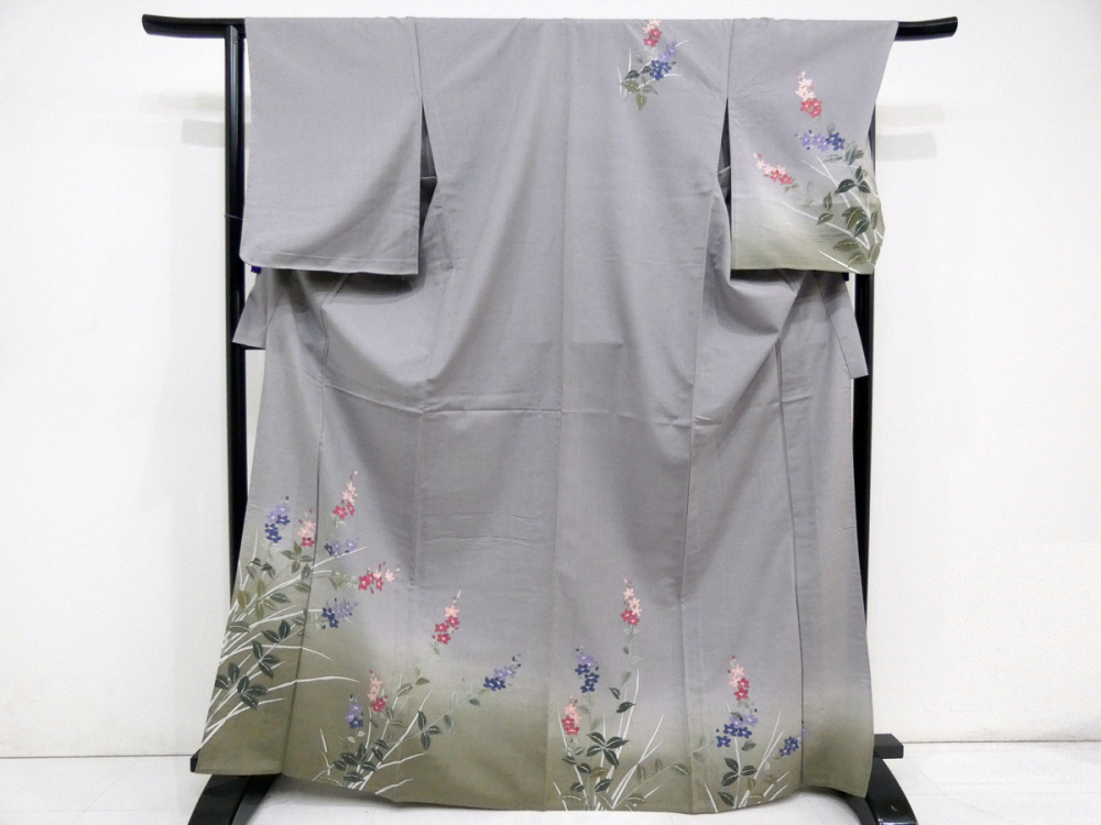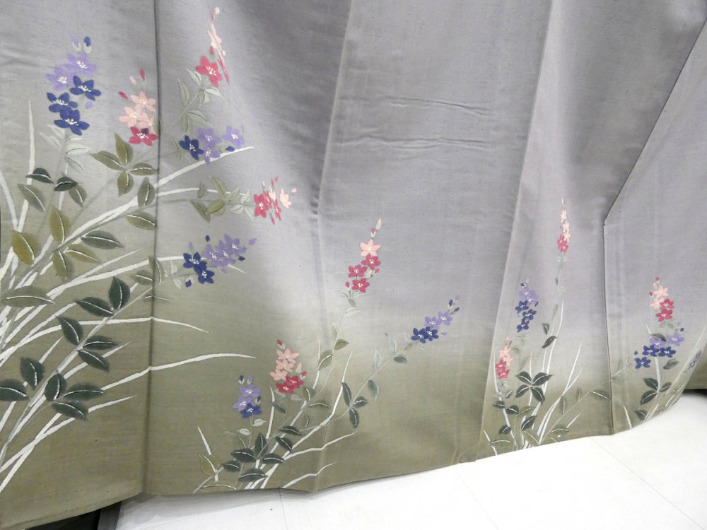 ◆雅星◆未使用良品!!グレー系*草花文 紬地 付下げ 正絹単衣 裄67丈171ロング 販売価格 39,800円 (税込) 購入数 \送料無料/ カートに入れる この商品について問い合わせる お気に入り 特定商取引法に基づく表記 商品詳細 状態ランク: ★★★★★ 薄手でしなやかな手触りの正絹紬地です。 手描きの草花模様が大きく描かれ、 控え目な柄ですが大変華やかな雰囲気です。 紬地&無紋なのでお出掛け着としてお気軽にご着用頂ける付下げです。 《単衣・広衿》身長166〜176cm位までの方にオススメです。 しつけ付き、着用感はありませんが、 保管の際についたと思われる薄シミが見られます。 着物のみの価格で、帯・小物は含まれておりません。 サイズ・素材 裄 67cm 肩身丈 171cm 袖丈 56.5cm 袖幅 34cm 前幅 26cm 後ろ幅 30.5cm 内揚げ 0cm 縫込み(袖側) 1cm 縫込み(肩側) 1cm 素材 正絹 状態ランクについて ★★★★★ 超美品・新品・未使用品です。 ★★★★ 中古品ですがダメージの無いお品です。 ★★★ 薄ジミなどがありますが着用時には目立ちません。 ★★ 工夫次第で十分着用可能なお買い得品です ★ 大きめのシミがありますので、リメイク材料等にどうぞ。 _fo _hito