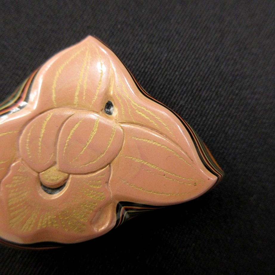 ■雅星■レトロ!!堆朱工芸 カトレア 在銘 《帯留め》【クリックポスト発送】 販売価格 12,800円 (税込) 購入数 \送料無料/ カートに入れる この商品について問い合わせる お気に入り 特定商取引法に基づく表記 商品詳細 状態ランク: ★★★ 色の違ううるしを幾重にも塗り重ねた素材、積層の美しさが楽しめます。 季節を選ばず、オールシーズンお使いいただける帯留めです。 アンティークコーディネートはもちろん、現代着物にも合いそうな雰囲気の漆帯留めです。 細かなスレやくすみは見られますが、目立つ汚れは無くお気軽にお楽しみ頂けます。 ※この商品はクリックポストで発送いたします。 ・発送方法の選択肢に【クリックポスト】はございません。こちらで変更させていただきます。 サイズ・素材 サイズ 約4.5cm×3.5cm 素材 堆朱・ウレタン・金属 状態ランクについて ★★★★★ 超美品・新品・未使用品です。 ★★★★ 中古品ですがダメージの無いお品です。 ★★★ 薄ジミなどがありますが着用時には目立ちません。 ★★ 工夫次第で十分着用可能なお買い得品です ★ 大きめのシミがありますので、リメイク材料等にどうぞ。 _an