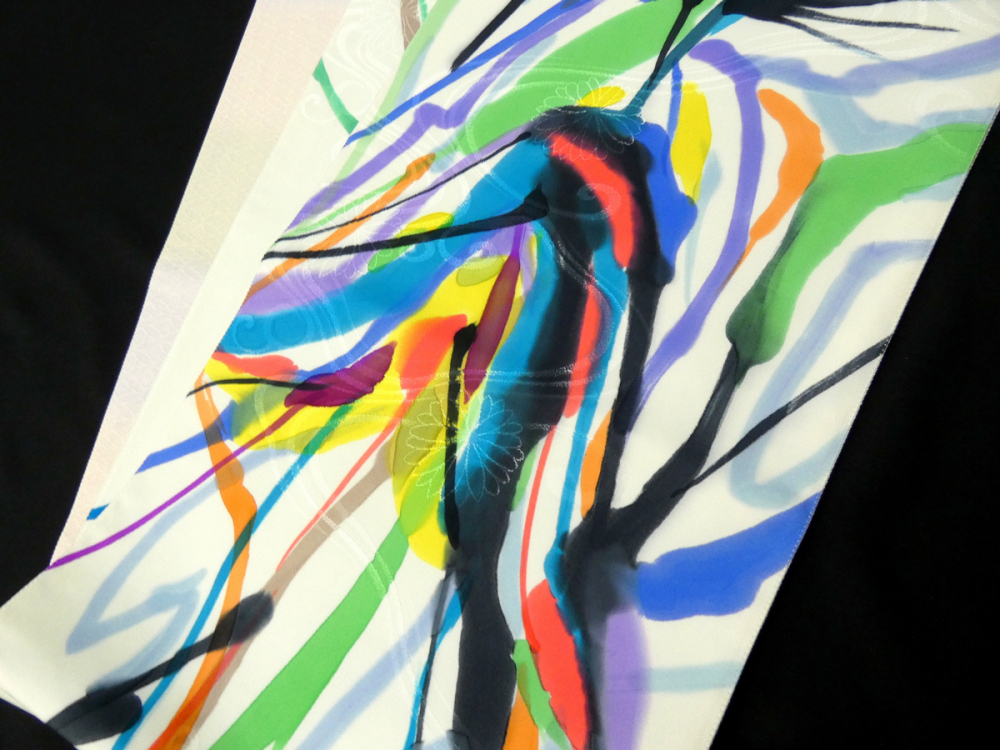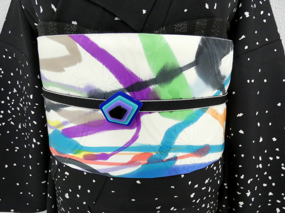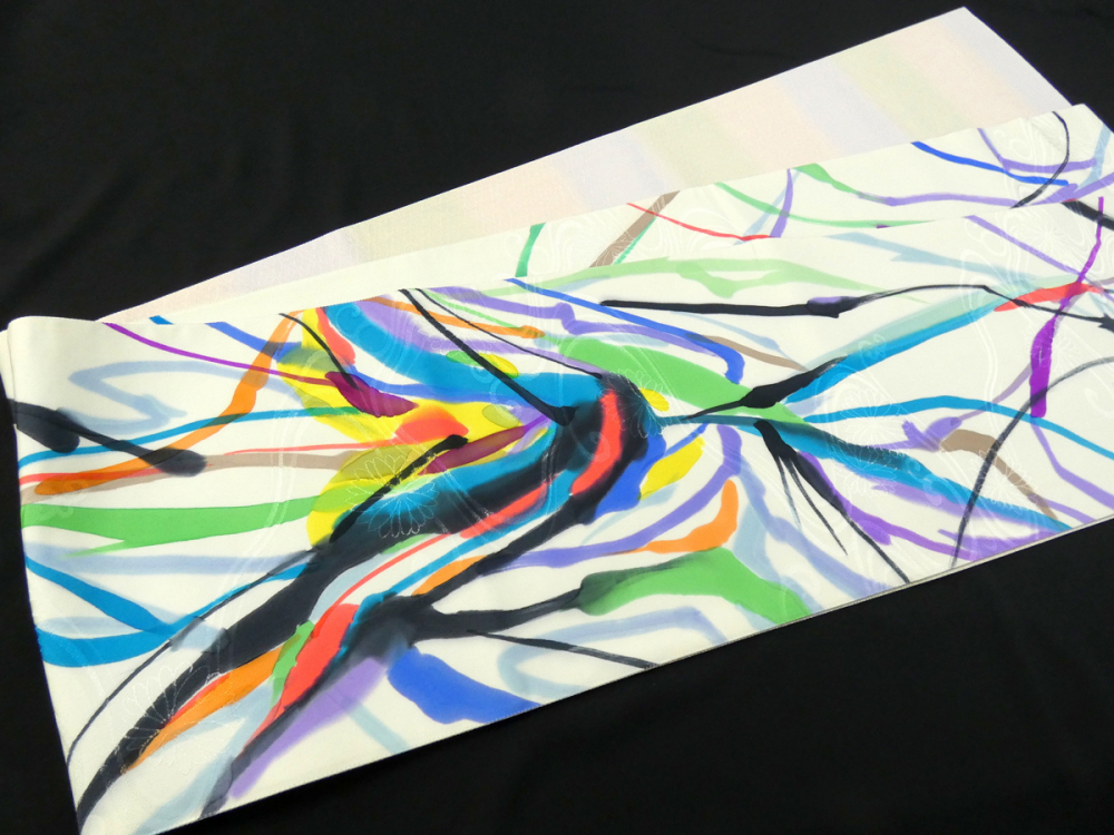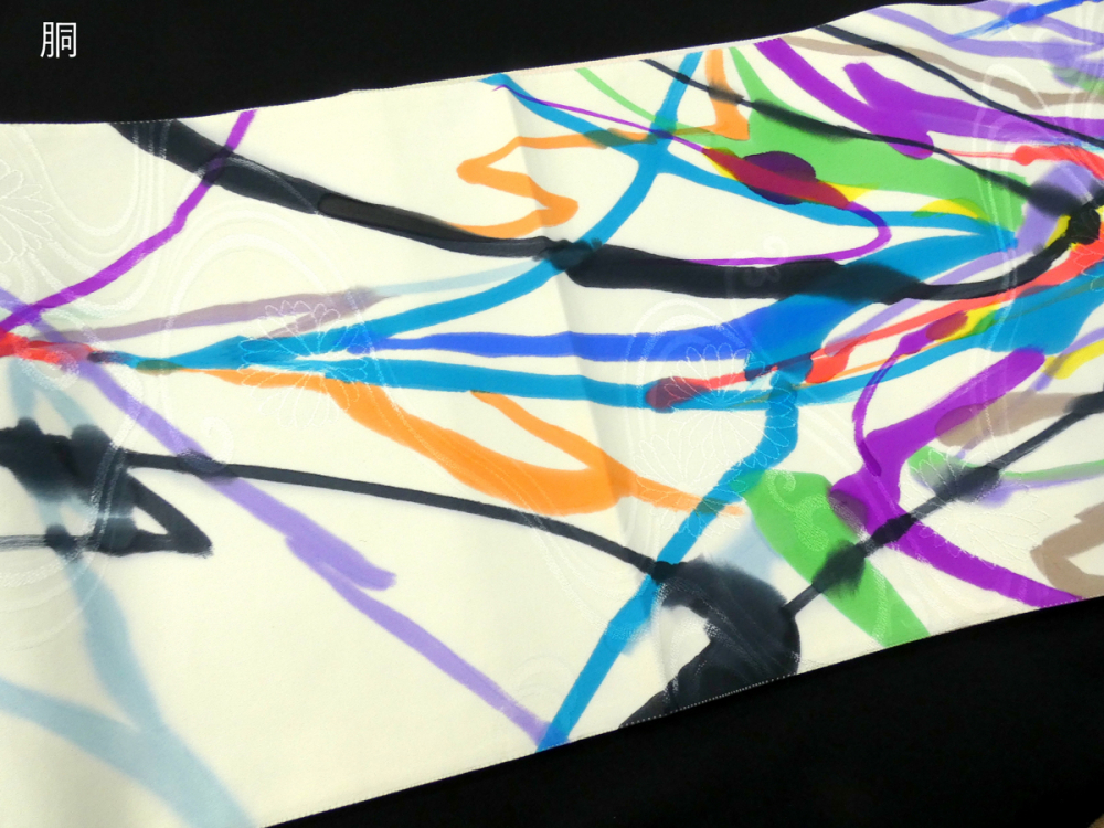 全体にカラフルなブラシアート、お太鼓と胴部分は柄が多くアクセントになっています。