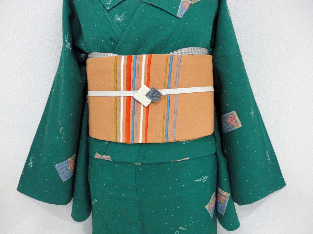 ○雅星○超美!!琥珀色*シマシマ♪縮緬 正絹九寸 《名古屋帯》 販売価格 24,800円 (税込) 購入数 \送料無料/ カートに入れる この商品について問い合わせる お気に入り 特定商取引法に基づく表記 商品詳細 状態ランク: ★★★★★ 黄色みがかったブラウンベース、しっかりとしたシボの上質な縮緬地です。 カラフルなシマシマ模様がカジュアルな印象。 しなやかな手触りなので軽い締め心地◎ 綺麗目な正統派からカジュアルスタイルまで振り幅広めにお楽しみ頂ける名古屋帯です。 目立つシミ汚れのない綺麗なお品物です◎ 帯のみの価格で、着物・小物は含まれておりません。 サイズ・素材 長さ 31.5cm×365cm 素材 正絹 状態ランクについて ★★★★★ 超美品・新品・未使用品です。 ★★★★ 中古品ですがダメージの無いお品です。 ★★★ 薄ジミなどがありますが着用時には目立ちません。 ★★ 工夫次第で十分着用可能なお買い得品です ★ 大きめのシミがありますので、リメイク材料等にどうぞ。