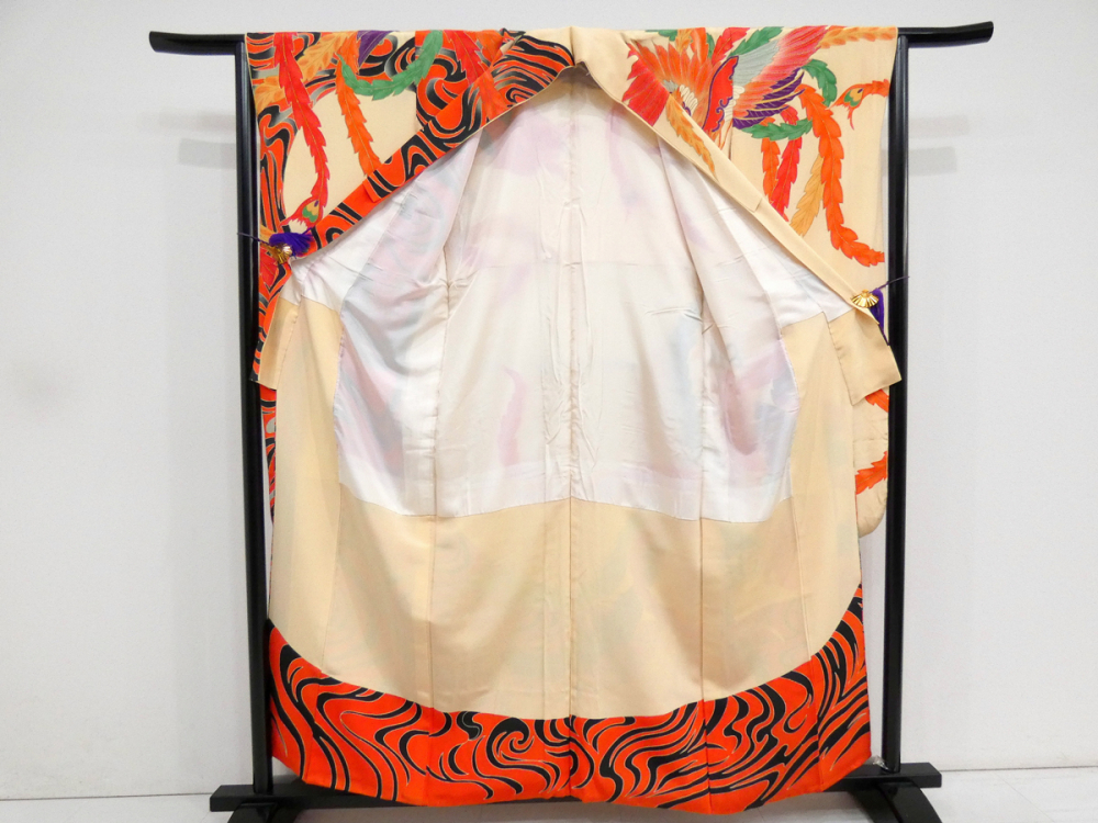 ◆雅星◆アンティーク!!薄黄×朱*鳳凰 振袖 正絹袷 裄65丈160ロング 販売価格 128,000円 (税込) 購入数 \送料無料/ カートに入れる この商品について問い合わせる お気に入り 特定商取引法に基づく表記 コーディネートで使用している商品 ◆雅星◆レトロ!!ブラック*鱗文 正絹全通《本袋帯》 29,800円(税込) ■雅星■新品!!ブラック*振袖用 総絞り 正絹帯揚げ 【クリックポスト発送】 16,500円(税込) 商品詳細 状態ランク: ★★★ マットな質感の正絹錦紗縮緬地、ずっしりと上質です。 全体に大きく描かれた鳳凰が華やか♪ 人と差のつく着こなしが楽しめるアンティークの振袖です! 《袷・広衿》身長150〜163cm位までの方にオススメです。 全体にうっすら時代なりのくすみ、画像の様な薄シミが見られますが、 着用時には柄に紛れ目立ちにくいです。 時代物に慣れた方でしたら十分お役立ていただけます。 着物のみの価格で、帯・小物は含まれておりません。 サイズ・素材 裄 65cm 肩身丈 160cm 袖丈 106cm 袖幅 32.5cm 前幅 23cm 後ろ幅 31cm 内揚げ 18cm 縫込み(袖側) 2cm 縫込み(肩側) 2.5cm 素材 正絹 状態ランクについて ★★★★★ 超美品・新品・未使用品です。 ★★★★ 中古品ですがダメージの無いお品です。 ★★★ 薄ジミなどがありますが着用時には目立ちません。 ★★ 工夫次第で十分着用可能なお買い得品です ★ 大きめのシミがありますので、リメイク材料等にどうぞ。 _furi _fo