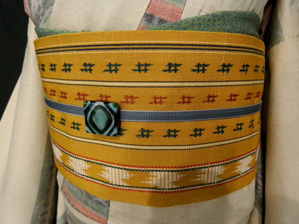 ◆雅星◆超美!!*マスタード*絣縞模様 木綿 《京袋帯》 販売価格 14,800円 (税込) 購入数 \送料無料/ カートに入れる この商品について問い合わせる お気に入り 特定商取引法に基づく表記 商品詳細 状態ランク: ★★★★ 京袋帯は、普通の袋帯に比べ短く、名古屋帯と同じように結ぶ帯です。 小紋や紬、ウールなどの普段着に幅広く合わせて頂けます♪♪ 素朴な質感の木綿地、芯無しで薄手でしなやかなので結びやすい^^ マスタードベースに縞や絣模様が織り出されています。 アンティーク〜現代のお着物まで幅広く合わせて頂ける木綿の京袋帯です! シミ汚れのない超美品です。 帯のみの価格で、着物・小物は含まれておりません。 サイズ・素材 長さ 30.5cm×359cm 素材 木綿 状態ランクについて ★★★★★ 超美品・新品・未使用品です。 ★★★★ 中古品ですがダメージの無いお品です。 ★★★ 薄ジミなどがありますが着用時には目立ちません。 ★★ 工夫次第で十分着用可能なお買い得品です ★ 大きめのシミがありますので、リメイク材料等にどうぞ。