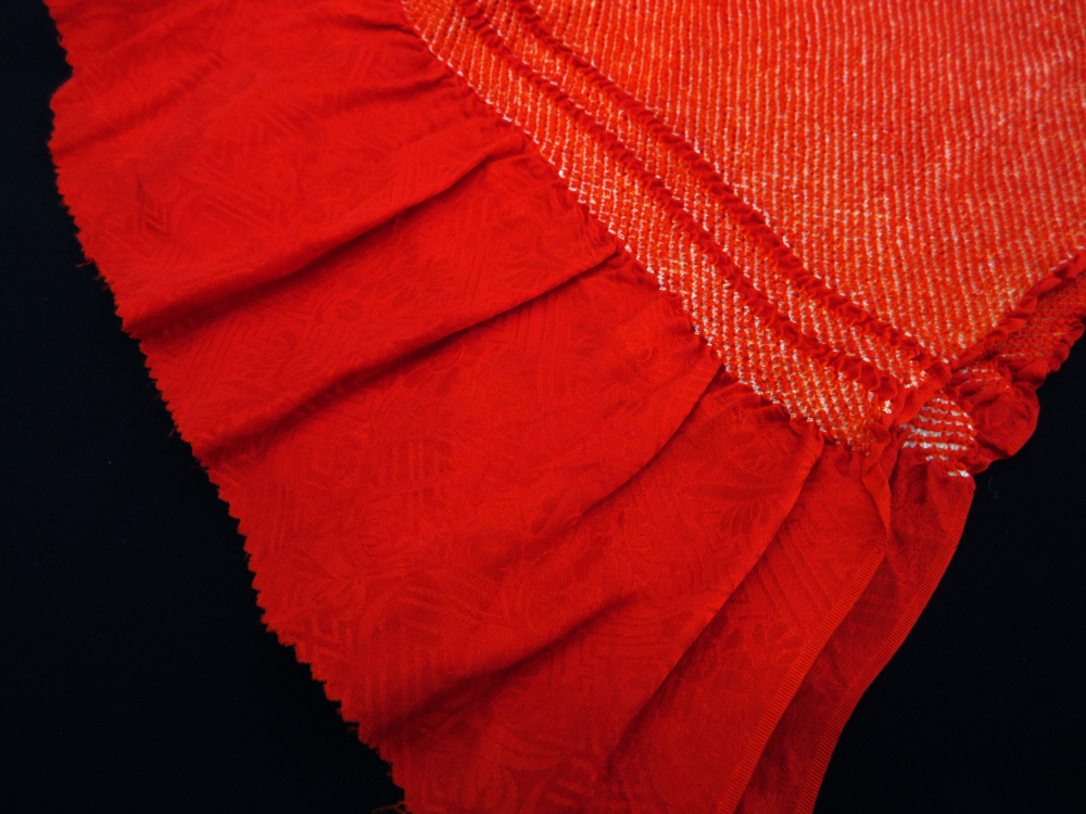 ▼雅星▼美品!!シグナルレッド*振袖用 総絞り 正絹帯揚げ 【クリックポスト発送】