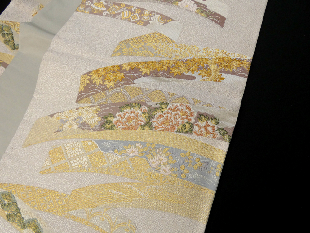 ◆雅星◆超美!!白地*熨斗捩文 正絹六通《袋帯》 販売価格 37,800円 (税込) 購入数 \送料無料/ カートに入れる この商品について問い合わせる お気に入り 特定商取引法に基づく表記 商品詳細 状態ランク: ★★★★★ 光沢のある白地に蜀江の地紋、草花のあしらわれた熨斗が上品な雰囲気です。 すっきり爽やかなスタイリングが叶います。 様々なフォーマルシーンでお使いいただける袋帯です。 シミ汚れのない超美品です。 帯のみの価格で、着物・小物は含まれておりません。 サイズ・素材 長さ 31cm×438cm 素材 正絹 状態ランクについて ★★★★★ 超美品・新品・未使用品です。 ★★★★ 中古品ですがダメージの無いお品です。 ★★★ 薄ジミなどがありますが着用時には目立ちません。 ★★ 工夫次第で十分着用可能なお買い得品です ★ 大きめのシミがありますので、リメイク材料等にどうぞ。 _fo