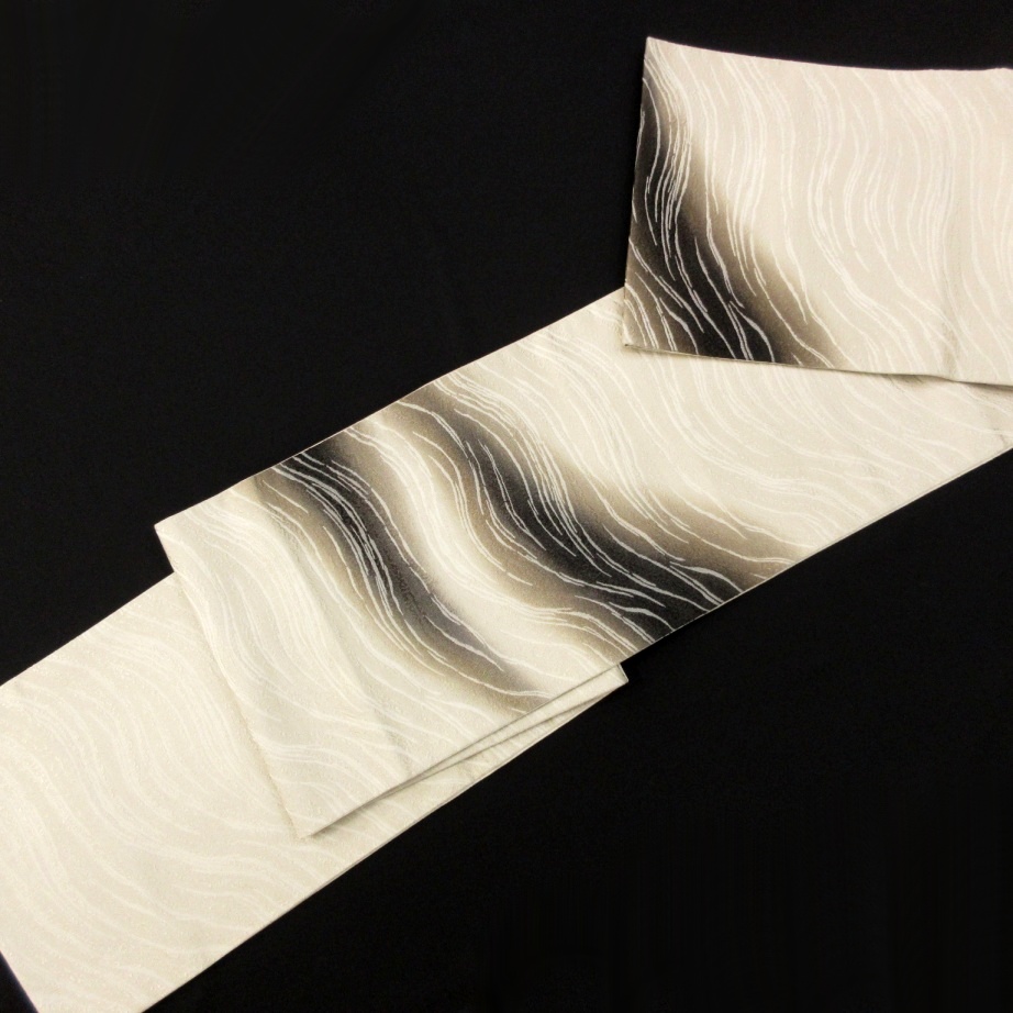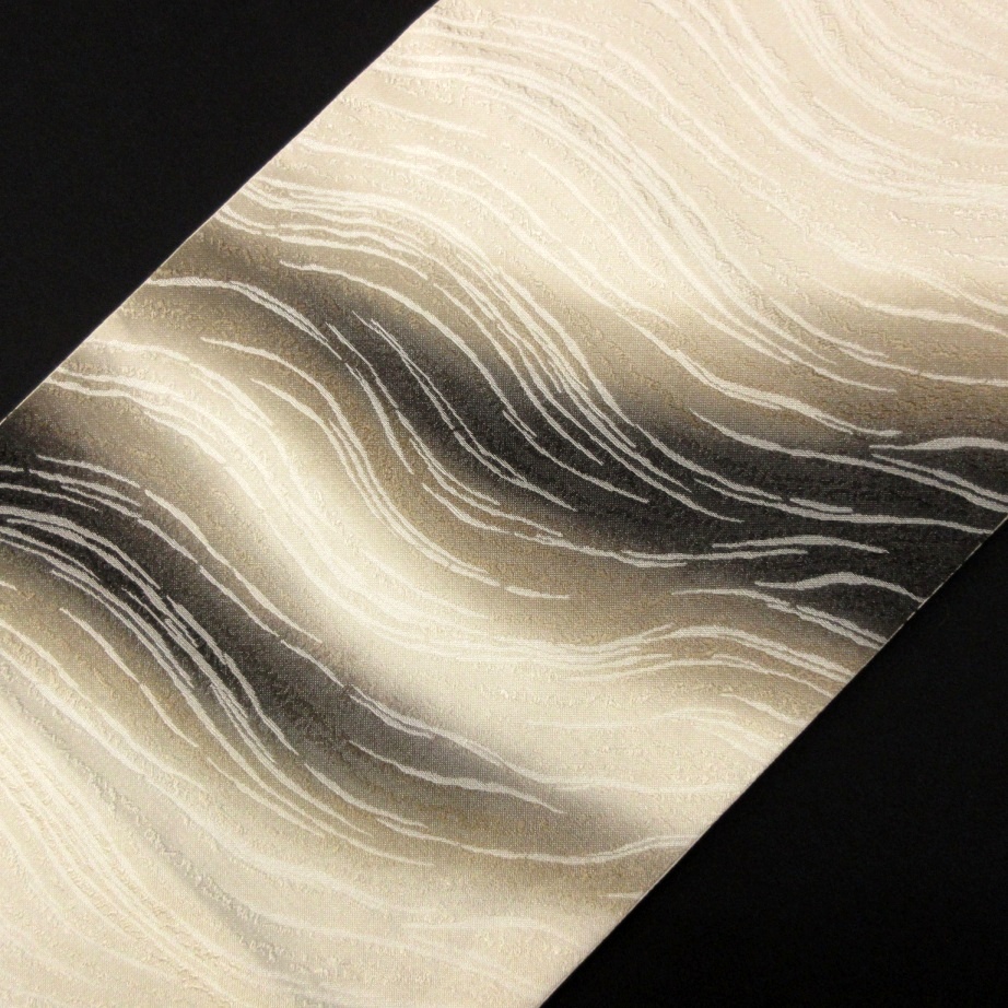 ■雅星■超美!!エクリュ*銀通し ゆらゆら文♪正絹《袋帯》
