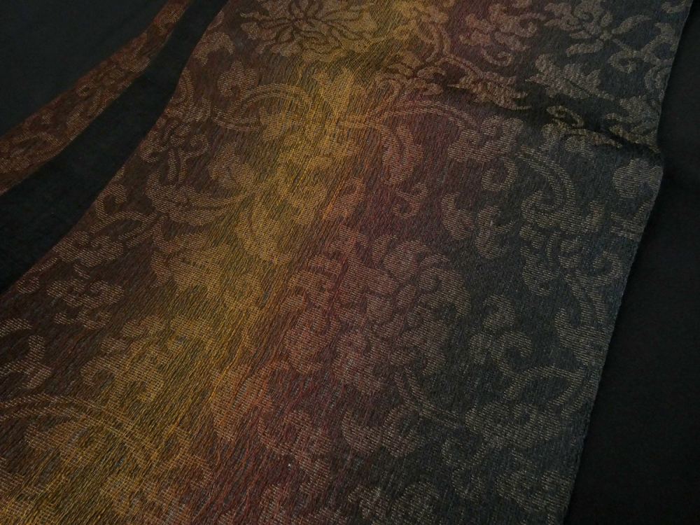 ◆雅星◆未使用超美!!ダークカラー*グラデ 唐草花模様 正絹全通 《洒落袋帯》 販売価格 49,800円 (税込) 購入数 \送料無料/ カートに入れる この商品について問い合わせる お気に入り 特定商取引法に基づく表記 商品詳細 状態ランク: ★★★★★ 黒・赤・黄・茶のグラデーションベース、唐草花の地紋が織り出されています。 合わせるお着物をぐっと上質に格上げしてくれる逸品です! 見た目の重厚感とは反して、薄手でしなやかなので軽い締め心地◎ パーティーシーンから上質な普段着まで、振り幅広めに楽しめる袋帯です。 撮影時のみ使用、シミ汚れのない超美品です。 帯のみの価格で、着物・小物は含まれておりません。 サイズ・素材 長さ 31cm×443cm 素材 正絹 状態ランクについて ★★★★★ 超美品・新品・未使用品です。 ★★★★ 中古品ですがダメージの無いお品です。 ★★★ 薄ジミなどがありますが着用時には目立ちません。 ★★ 工夫次第で十分着用可能なお買い得品です ★ 大きめのシミがありますので、リメイク材料等にどうぞ。