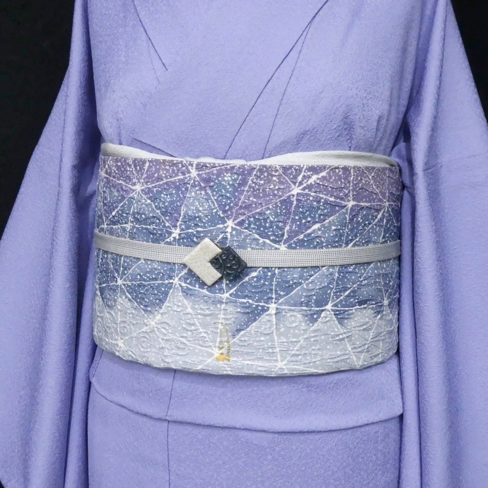 〓雅星〓良品!!ブルーグレー系【鵬翔】膨れ織 アーティ♪正絹全通《洒落袋帯》 販売価格 22,800円 (税込) 購入数 \送料無料/ カートに入れる この商品について問い合わせる お気に入り 特定商取引法に基づく表記 商品詳細 状態ランク: ★★★ 鵬翔のフクレ織は「お召糸」と呼ばれる特殊な絹糸を使って織り上げられ、 光の陰影に浮かび上がるフクレ織の地模様はシルクの光沢とあいまって、 やさしく細やかな美しさをたたえています。 伝統の技法で染められ、その染め上がりの美しさと、地模様と染めのバランスが人々を魅了します。 幾何学模様の膨れ織地にアーティな染め模様、 モダンな抽象文なのでお着物の柄とケンカしにくく合わせやすい♪ 清潔感あふれる色柄で女性らしいスタイリングが楽しめる洒落袋帯です。 反時計回り胴柄にシミが見られますが、その他は綺麗なので関西巻きでお楽しみ下さい。 ぐっとお値下げしていますので、お手入れに出されても惜しくないお値段ですよ! 帯のみの価格で、着物・小物は含まれておりません。 サイズ・素材 長さ 31cm×451cm 素材 正絹 状態ランクについて ★★★★★ 超美品・新品・未使用品です。 ★★★★ 中古品ですがダメージの無いお品です。 ★★★ 薄ジミなどがありますが着用時には目立ちません。 ★★ 工夫次第で十分着用可能なお買い得品です ★ 大きめのシミがありますので、リメイク材料等にどうぞ。