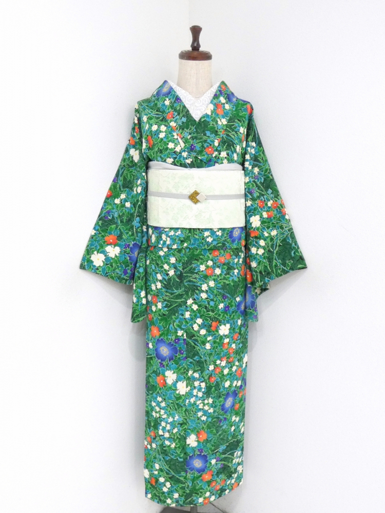 ◆雅星◆未使用良品!!グリーン*ボタニカル 縮緬小紋 正絹単衣 裄65丈157 販売価格 19,800円 (税込) 購入数 \送料無料/ カートに入れる この商品について問い合わせる お気に入り 特定商取引法に基づく表記 コーディネートで使用している商品 ★雅星本店オリジナル★新品!!プラチナ*シマシマ 銀通し 帯揚げ 正絹 【クリックポスト発送】 15,400円(税込) ★雅星本店オリジナル★新品!!プラチナ*帯締め 房付き四分紐 正絹【クリックポスト発送】 14,800円(税込) 商品詳細 状態ランク: ★★★ 細かなシボの縮緬、落ち感も綺麗でずっしり上質な正絹地です。 グリーンベースにカラフルな草花模様が細かく描きこまれています。 綺麗目な正統派からカジュアルコーデまで幅広くお楽しみ頂ける小紋です。 《単衣・広衿》身長152〜162cm位までの方にオススメです。 しつけ付き、白地に画像の様なくすみがちょこちょこと見られますが、 着用時には色柄に紛れ目立ちにくいです。 ダメージの分お安くなっていますので、気にせずご着用いただける方、お買い得です♪ 着物のみの価格で、帯・小物は含まれておりません。 サイズ・素材 裄 65cm 肩身丈 157cm 袖丈 48cm 袖幅 32cm 前幅 23.5cm 後ろ幅 29cm 内揚げ 12cm 縫込み(袖側) 2cm 縫込み(肩側) 2cm 素材 正絹 状態ランクについて ★★★★★ 超美品・新品・未使用品です。 ★★★★ 中古品ですがダメージの無いお品です。 ★★★ 薄ジミなどがありますが着用時には目立ちません。 ★★ 工夫次第で十分着用可能なお買い得品です ★ 大きめのシミがありますので、リメイク材料等にどうぞ。 _hito