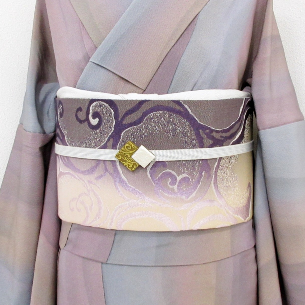 ■雅星■美品!!モーブ系*光琳波 渦巻き♪正絹全通《袋帯》 販売価格 42,800円 (税込) 購入数 \送料無料/ カートに入れる この商品について問い合わせる お気に入り 特定商取引法に基づく表記 商品詳細 状態ランク: ★★★★ 薄手でしなやかな手触りなので軽い締め心地です。 モーブ色グラデーションに光琳波がエレガントな1本。 光の加減で上品に煌めき、スタイリングをぐっと華やかな装いに格上げしてくれます。 全通柄なので飾り結びはもちろん、振袖だけでなくパーティシーンにもおススメな逸品です。 締め跡はありますが、目立つシミ・汚れのない綺麗なお品です。 帯のみの価格で、着物・小物は含まれておりません。 サイズ・素材 長さ 31cm×450cm 素材 正絹 状態ランクについて ★★★★★ 超美品・新品・未使用品です。 ★★★★ 中古品ですがダメージの無いお品です。 ★★★ 薄ジミなどがありますが着用時には目立ちません。 ★★ 工夫次第で十分着用可能なお買い得品です ★ 大きめのシミがありますので、リメイク材料等にどうぞ。 _fo