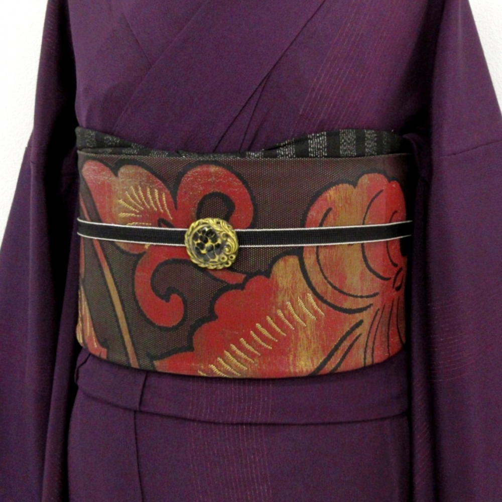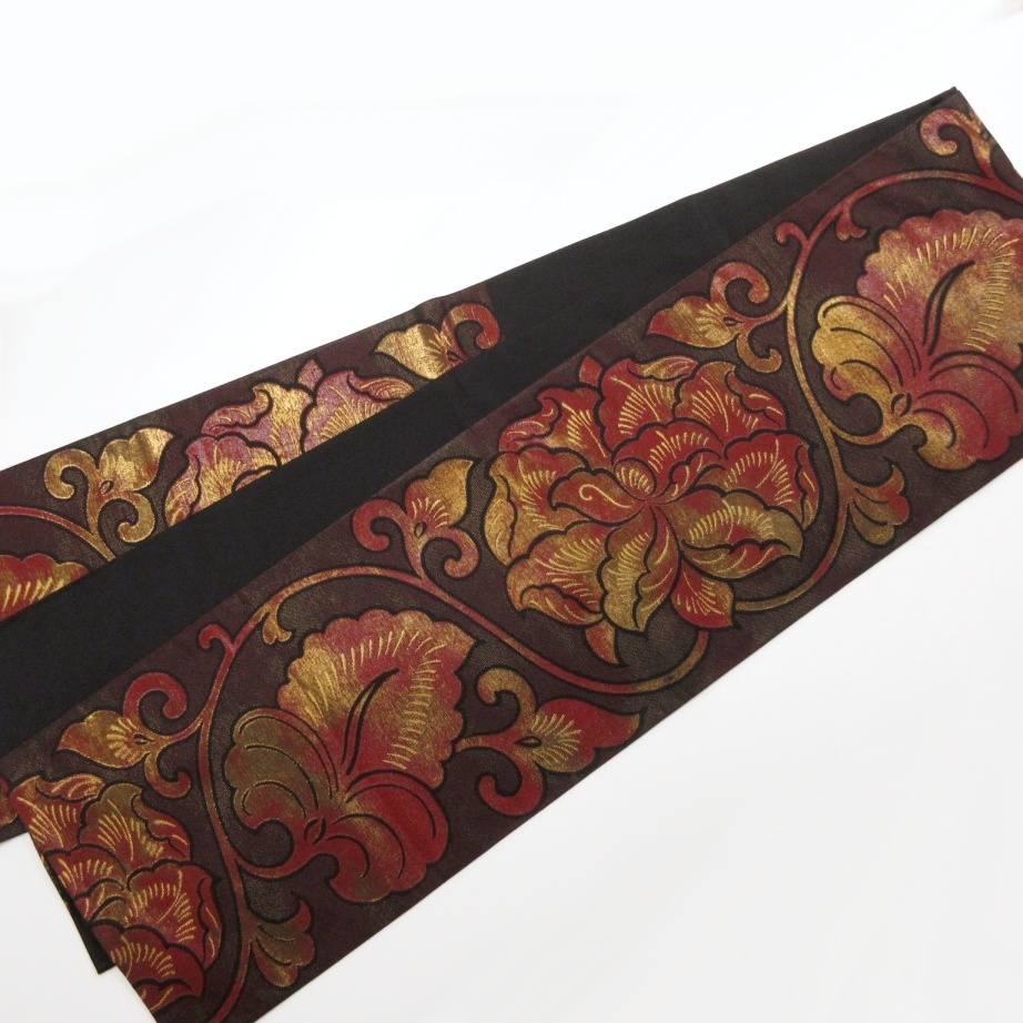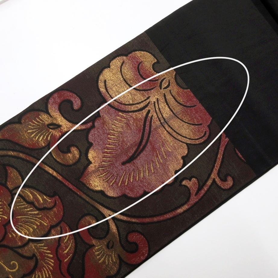 ■雅星■美品!!ブラック*焼箔 唐花♪正絹六通《袋帯》 販売価格 29,800円 (税込) 購入数 \送料無料/ カートに入れる この商品について問い合わせる お気に入り 特定商取引法に基づく表記 商品詳細 状態ランク: ★★★ ブラックベースに大胆なデザインの唐花模様、金糸が鈍く煌めき重厚感を感じます。 見た目とは反して薄手で軽い締め心地。 ドレスアップorカジュアルダウン自在に楽しんでいただける袋帯です。 時代感はややセミアンティーク寄り。 締め跡はありますが、目立つシミ・汚れのないグッドコンディションなお品です。 帯のみの価格で、着物・小物は含まれておりません。 サイズ・素材 長さ 30.5cm×420cm 素材 正絹 状態ランクについて ★★★★★ 超美品・新品・未使用品です。 ★★★★ 中古品ですがダメージの無いお品です。 ★★★ 薄ジミなどがありますが着用時には目立ちません。 ★★ 工夫次第で十分着用可能なお買い得品です ★ 大きめのシミがありますので、リメイク材料等にどうぞ。 _fo