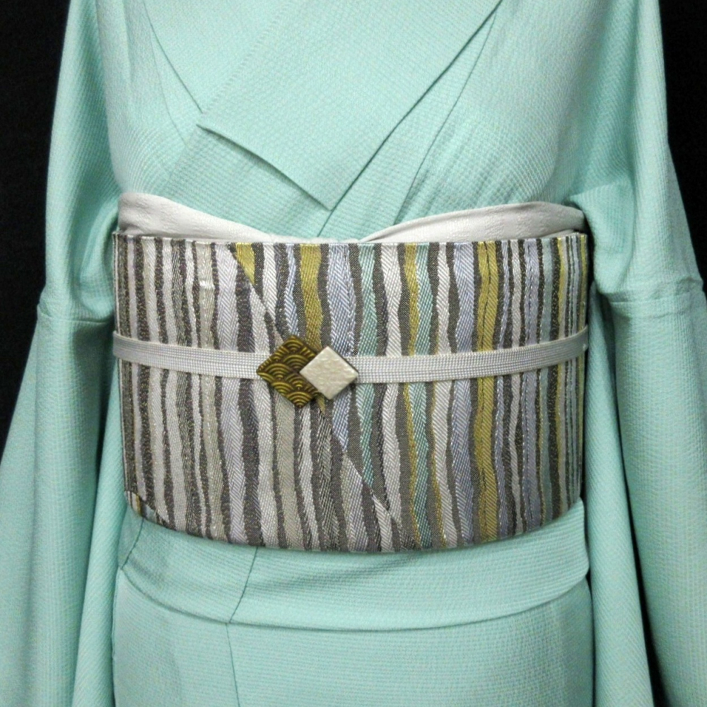 ■雅星■超美!!グレイッシュ×金*スモーキーパステルなみなみ 楕円文♪正絹六通 《袋帯》 販売価格 39,800円 (税込) 購入数 \送料無料/ カートに入れる この商品について問い合わせる お気に入り 特定商取引法に基づく表記 商品詳細 状態ランク: ★★★★★ グレーベースになみなみ楕円文がクールな印象、金銀糸とパステルカラーで華やかに煌めきます。 合わせるお着物をぐっと上質に格上げしてくれる逸品です! 見た目の重厚感とは反して、薄手でしなやかなので軽い締め心地◎ パーティーなどの華やかなフォーマルシーンから上質な普段着まで、振り幅広めに楽しめる袋帯です。 シミ・汚れのない超美のお品です! 帯のみの価格で、着物・小物は含まれておりません。 サイズ・素材 長さ 31cm×428cm 素材 正絹 状態ランクについて ★★★★★ 超美品・新品・未使用品です。 ★★★★ 中古品ですがダメージの無いお品です。 ★★★ 薄ジミなどがありますが着用時には目立ちません。 ★★ 工夫次第で十分着用可能なお買い得品です ★ 大きめのシミがありますので、リメイク材料等にどうぞ。 _fo