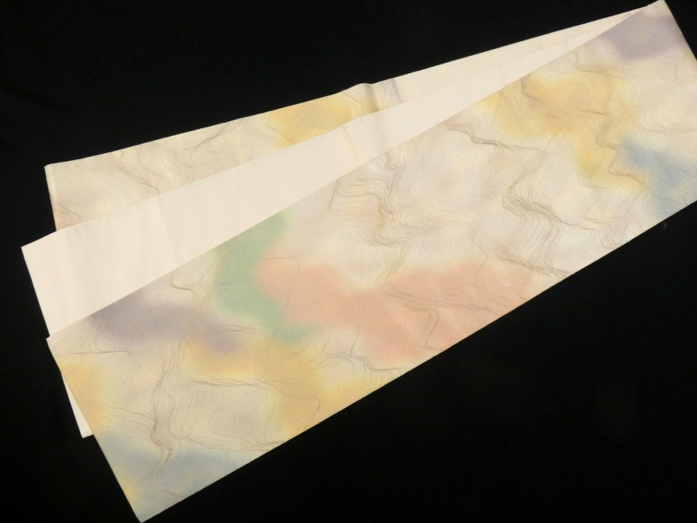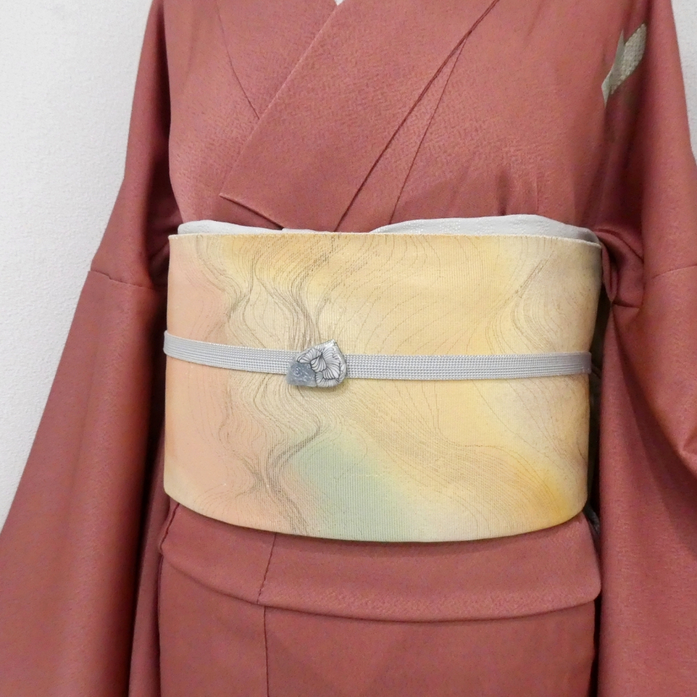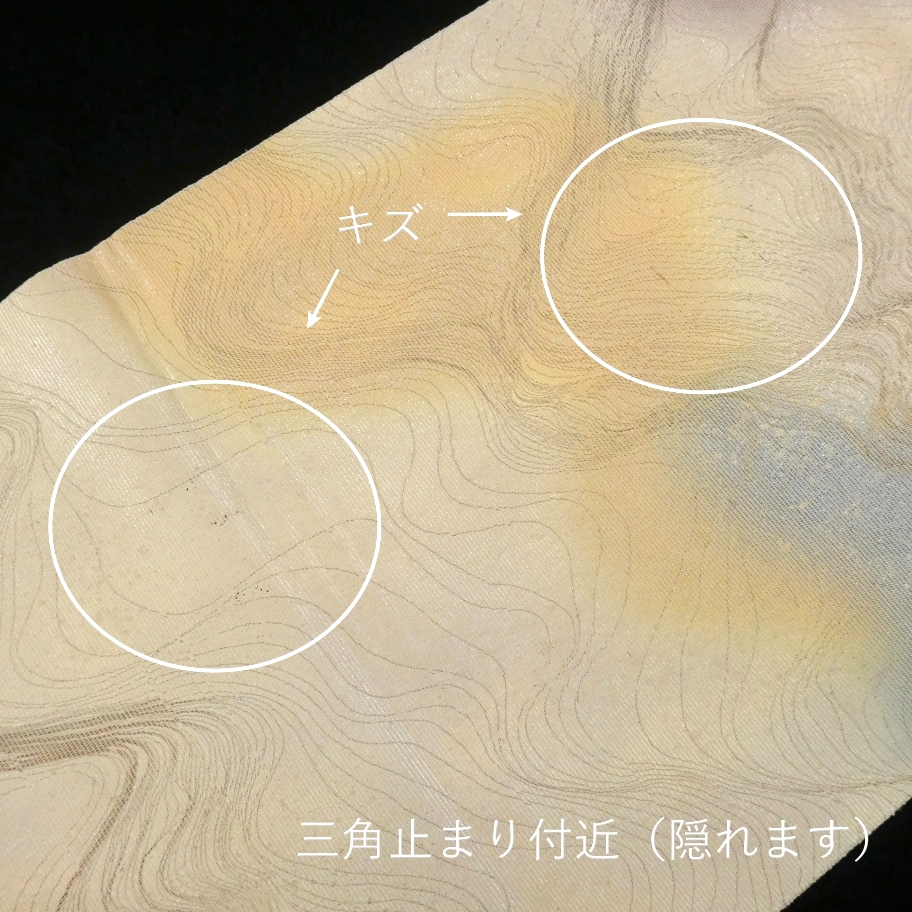 〓雅星〓美品!!砥粉色*暈し WAVE♪正絹六通《袋帯》 販売価格 32,800円 (税込) 購入数 \送料無料/ カートに入れる この商品について問い合わせる お気に入り 特定商取引法に基づく表記 商品詳細 状態ランク: ★★★ 薄手でしなやかで結びやすいですが、見た目の重厚感はしっかりあります。 灰みの薄黄色ベースにシャンパンゴールドのWAVEとベースの暈しが相まって幻想的な美しさ。 全体的に優しい色合いなので、合わせるお着物をさりげなく格上げしてくれる上質な袋帯です! 胴柄横付近に薄シミ・三角止まりに当たる付近に箔のキズが見られますが、いずれも締めた後に隠れる位置です。 着後に酷く目立つようなダメージはなく綺麗なお品です。 帯のみの価格で、着物・小物は含まれておりません。 サイズ・素材 長さ 31cm×446cm 素材 正絹 状態ランクについて ★★★★★ 超美品・新品・未使用品です。 ★★★★ 中古品ですがダメージの無いお品です。 ★★★ 薄ジミなどがありますが着用時には目立ちません。 ★★ 工夫次第で十分着用可能なお買い得品です ★ 大きめのシミがありますので、リメイク材料等にどうぞ。 _fo