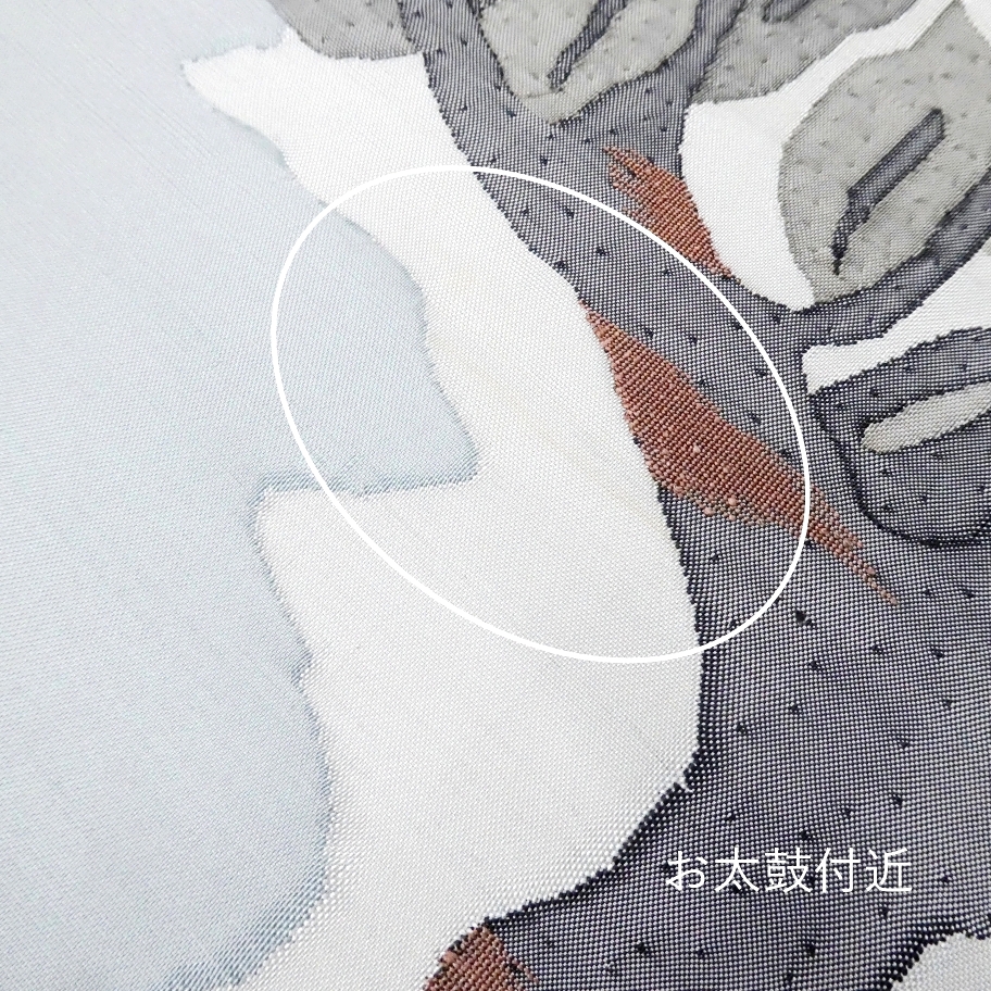 〓雅星〓美品!!薄雲鼠色*紬地 木立文♪正絹《洒落袋帯》 販売価格 27,800円 (税込) 購入数 \送料無料/ カートに入れる この商品について問い合わせる お気に入り 特定商取引法に基づく表記 商品詳細 状態ランク: ★★★ さらっとした紬地、かなり薄手でしなやかな手触りで軽い締め心地。 優しいグレー系ベースに大きな木立があしらわれているので、お太鼓に出す柄を調整すると変化が楽しめます♪ 落ち着いた正統派からカジュアルコーデまで、お気軽な普段着使いに最適な洒落袋帯です。 画像のような薄汚れはちょこちょこありますが、いずれも軽度なので注意深く見なければ気づかない程度です◎ 胴柄付近の帯芯のよれも締めてしまえば気になりませんでした。 その分お値下げしていますので、色柄を気に入ってくださった方に是非! 帯のみの価格で、着物・小物は含まれておりません。 サイズ・素材 長さ 30.5cm×452cm 素材 正絹 状態ランクについて ★★★★★ 超美品・新品・未使用品です。 ★★★★ 中古品ですがダメージの無いお品です。 ★★★ 薄ジミなどがありますが着用時には目立ちません。 ★★ 工夫次第で十分着用可能なお買い得品です ★ 大きめのシミがありますので、リメイク材料等にどうぞ。