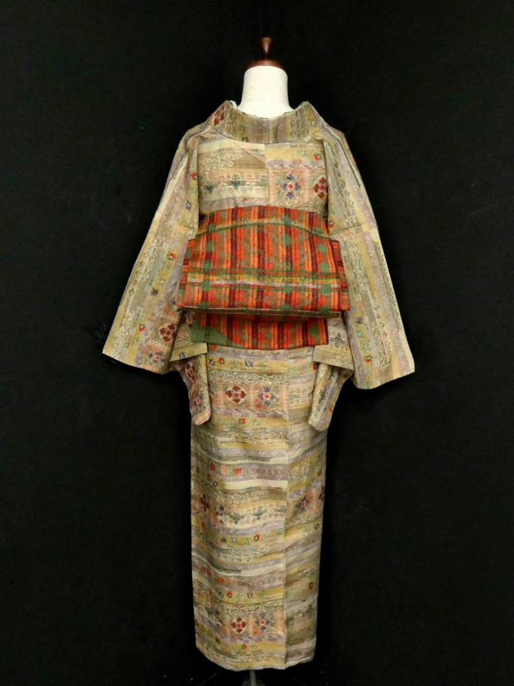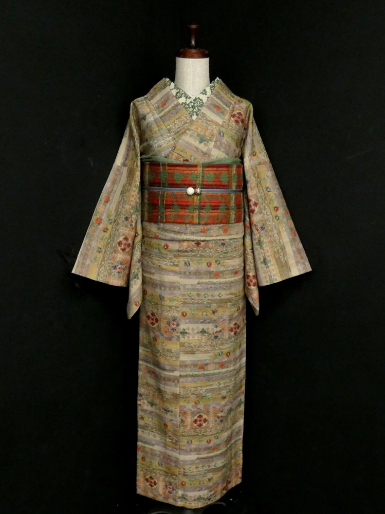 ◆雅星◆超美!!ベージュ系*横段 花 正絹紬 単衣 裄66丈161ロング 販売価格 29,800円 (税込) 購入数 \送料無料/ カートに入れる この商品について問い合わせる お気に入り 特定商取引法に基づく表記 コーディネートで使用している商品 ◆雅星◆未使用超美!!鉛丹色*紬地 絞り 縞にドット 正絹九寸《名古屋帯》 26,800円(税込) ■雅星本店オリジナル■新品!!グリーン&グレー ストーン*友禅帯揚げ 正絹縮緬 【クリックポスト発送】 15,400円(税込) ★雅星本店オリジナル★新品*リバーシブル 縁あり三分紐【クリックポスト発送】 6,600円(税込) 商品詳細 状態ランク: ★★★★★ 節のある素朴な質感の正絹紬地、 横段に細かい花模様が織り出され上品な可愛らしさがあります。 ベーシックなデザインなので飽きが来ず、こだわりの帯や小物も良く映え幅広くお楽しみ頂けます◎ 年齢・流行問わずご着用頂ける普段着キモノに最適な紬です。 《単衣・広衿》身長156〜166cm位までの方にオススメです。 シミ・汚れのない大変綺麗なお品です。 着物のみの価格で、帯・小物は含まれておりません。 サイズ・素材 裄 66cm 肩身丈 161cm 袖丈 49.5cm 袖幅 33.5cm 前幅 25.5cm 後ろ幅 29cm 内揚げ 0cm 縫込み(袖側) 1.5cm 縫込み(肩側) 1.5cm 素材 正絹 状態ランクについて ★★★★★ 超美品・新品・未使用品です。 ★★★★ 中古品ですがダメージの無いお品です。 ★★★ 薄ジミなどがありますが着用時には目立ちません。 ★★ 工夫次第で十分着用可能なお買い得品です ★ 大きめのシミがありますので、リメイク材料等にどうぞ。 _hito