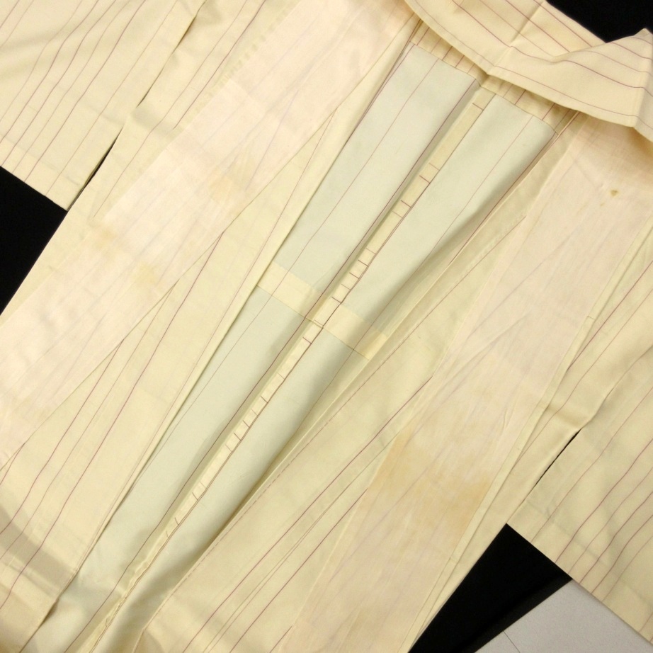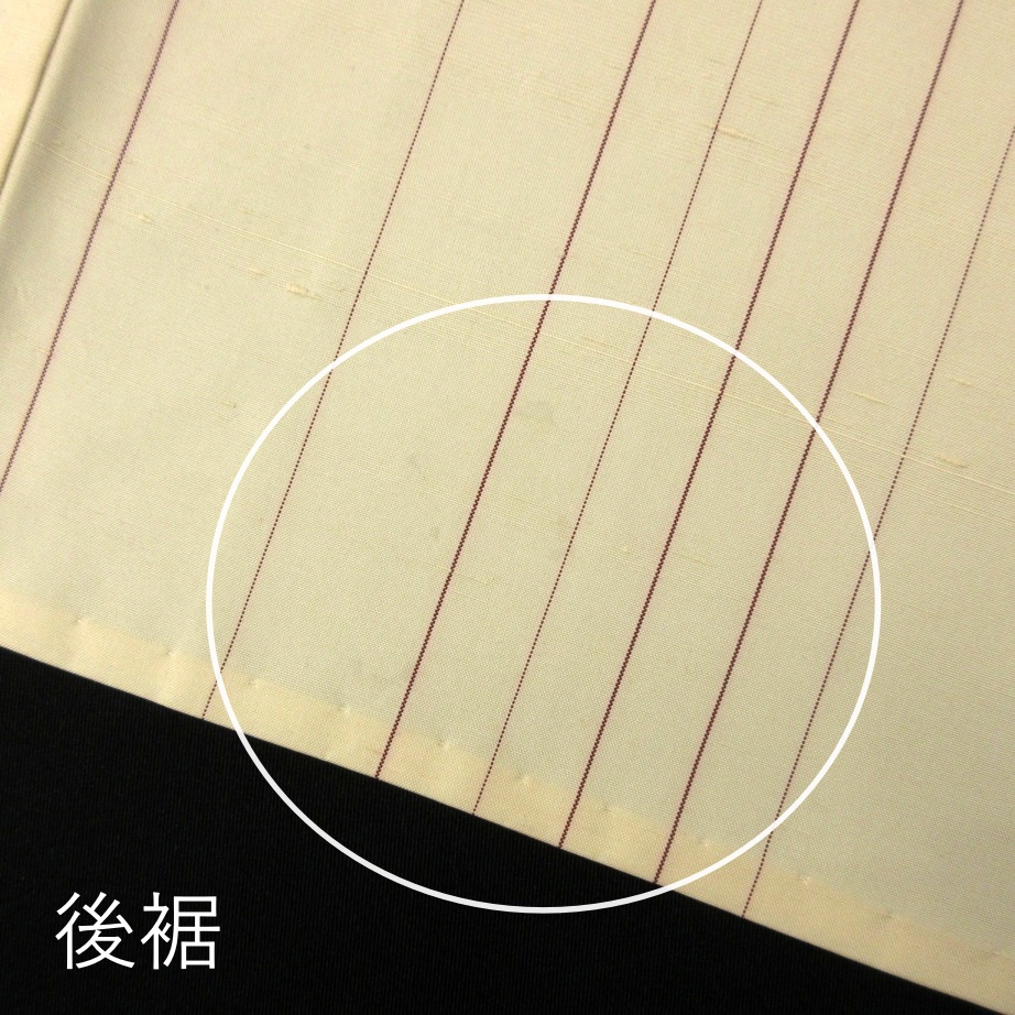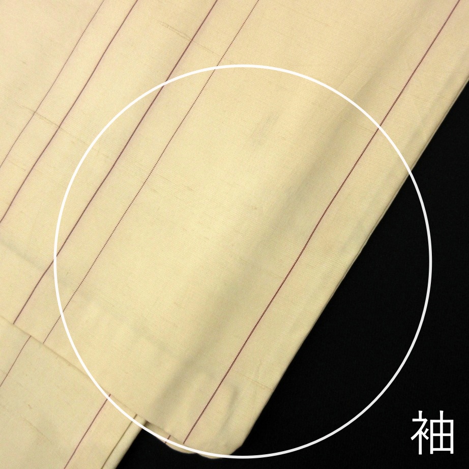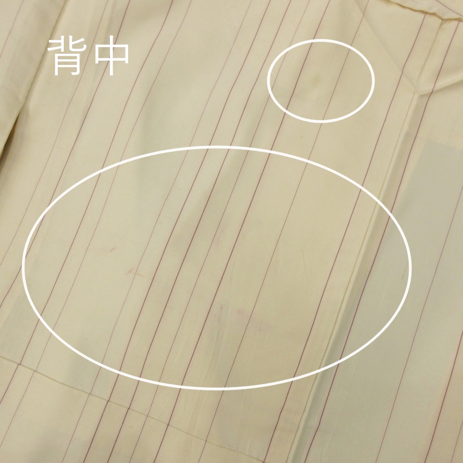 ■雅星■アイボリー*シマシマ♪正絹紬 単衣 裄61.5丈151 販売価格 9,800円 (税込) 購入数 \送料無料/ カートに入れる この商品について問い合わせる お気に入り 特定商取引法に基づく表記 商品詳細 状態ランク: ★★★ 大島紬に似た光沢感・シャリ感のある手触り、 アイボリーベースにシンプルな縞模様のベーシックなデザイン。 スタイリング次第で、綺麗目な正統派から自由なカジュアルスタイルまで幅広くお楽しみ頂ける普段着紬です。 《単衣・広衿》身長〜156cm位までの細身の方にオススメです。 柄の織りに滲みが見られます。 全体的にくすみ、衿裏が薄変色、背中に染料滲みや薄シミが見られる為ぐっとお値下げしています。 薄手で軽いのでお部屋着やワンマイル着物としてお気軽に如何でしょうか。 着物のみの価格で、帯・小物は含まれておりません。 サイズ・素材 裄 61.5cm 肩身丈 151cm 袖丈 47.5cm 袖幅 32cm 前幅 22.5cm 後ろ幅 28.5cm 内揚げ 0cm 縫込み(袖側) 4cm 縫込み(肩側) 4cm 素材 正絹 状態ランクについて ★★★★★ 超美品・新品・未使用品です。 ★★★★ 中古品ですがダメージの無いお品です。 ★★★ 薄ジミなどがありますが着用時には目立ちません。 ★★ 工夫次第で十分着用可能なお買い得品です ★ 大きめのシミがありますので、リメイク材料等にどうぞ。 _hito