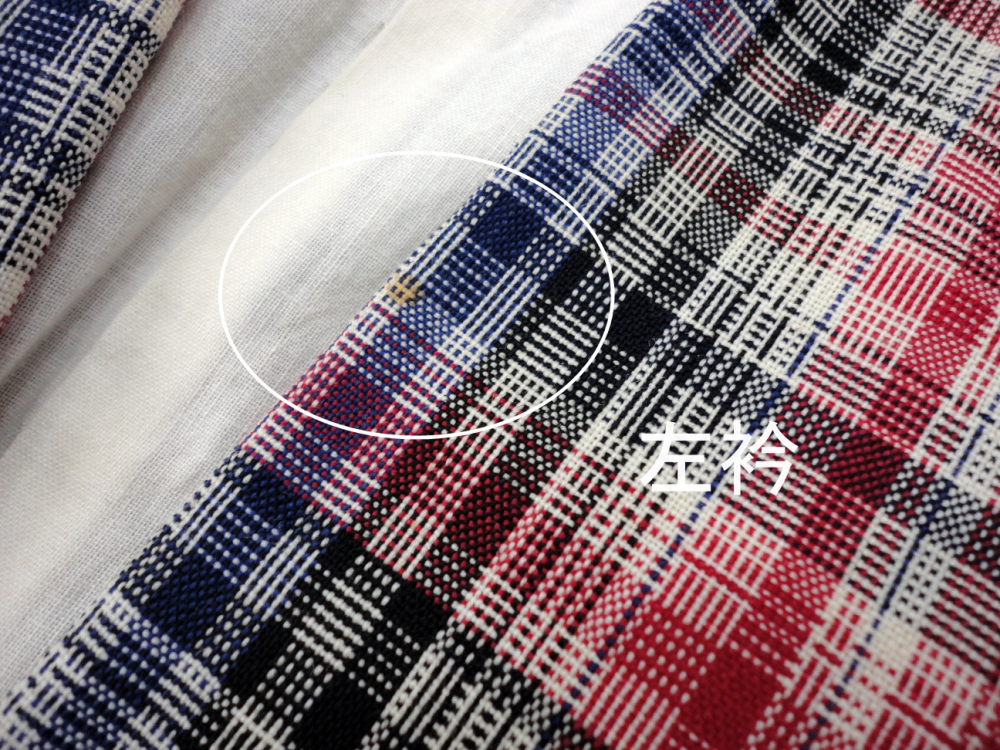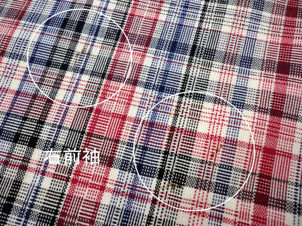 画像の様にちょこちょこ薄シミが見られますが色柄に紛れて着用時気になりにくく感じました。