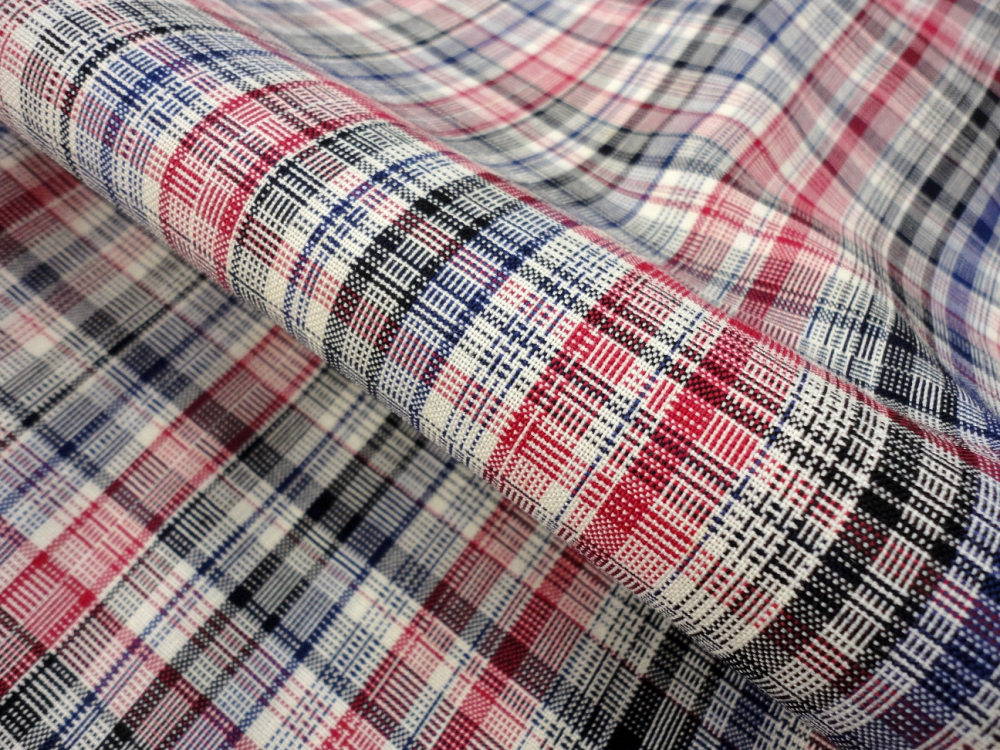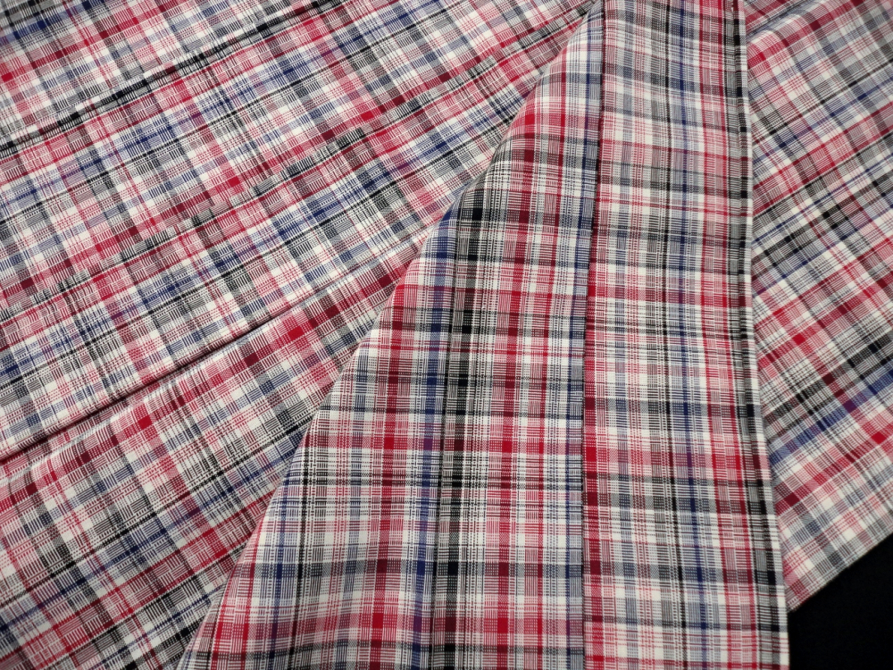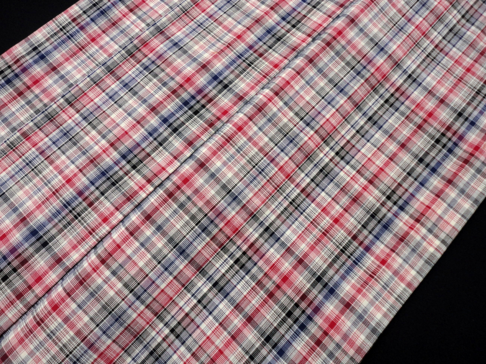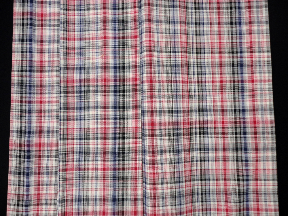 ○雅星○良品!!アイボリー*チェック♪ウール単衣 裄65丈162ロング