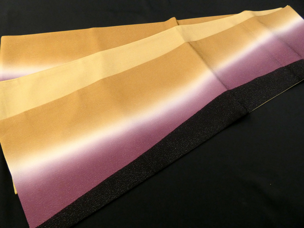 ◆雅星◆未使用超美!!ブラウン×パープル*銀通し ウェーブ 正絹全通 染め《袋帯》