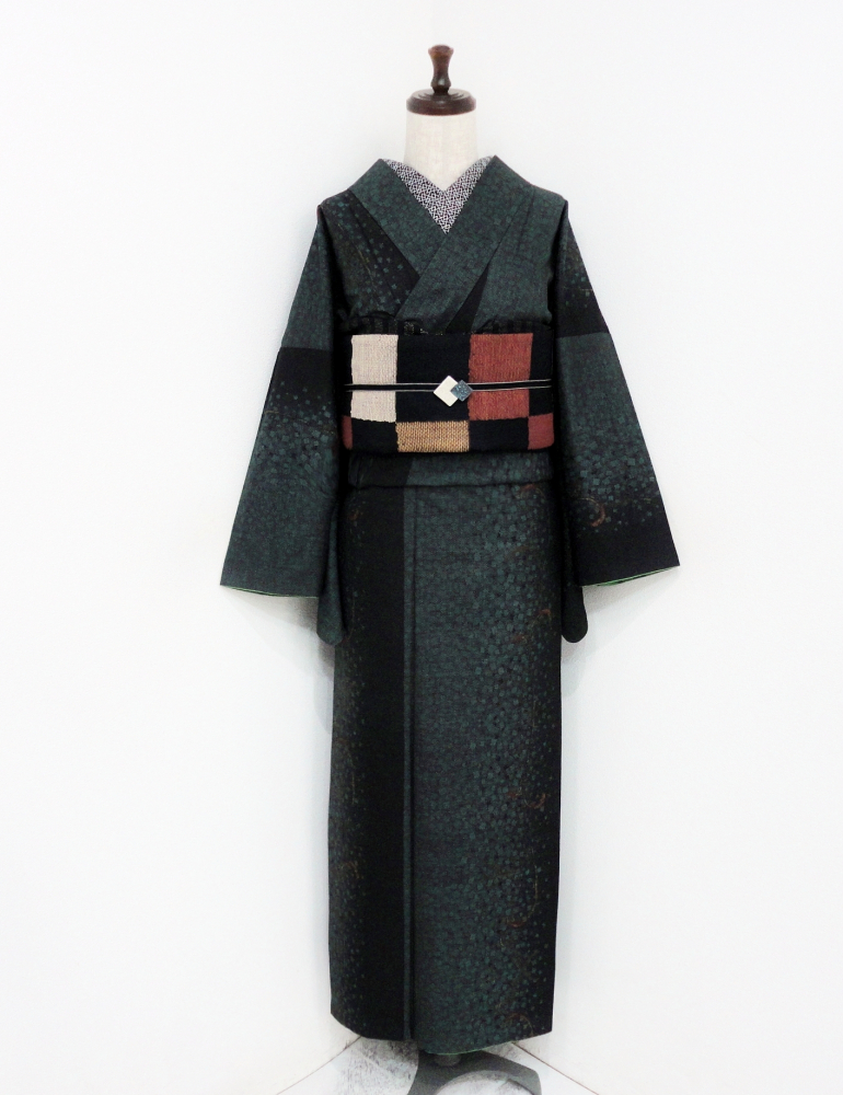 ○雅星○美品!!黒×緑 グラデ 本場大島紬 泥染め 藤絹織物 モザイク♪正絹袷 裄67丈158 販売価格 49,800円 (税込) 購入数 \送料無料/ カートに入れる この商品について問い合わせる お気に入り 特定商取引法に基づく表記 コーディネートで使用している商品 ○雅星○超美!!ブラック*スクエア 格子 紬地 正絹《洒落袋帯》 42,800円(税込) ★雅星本店オリジナル★新品!!ブラック*シマシマ 銀通し 帯揚げ 正絹 【クリックポスト発送】 15,400円(税込) ★雅星本店オリジナル★新品*リバーシブル 縁あり三分紐【クリックポスト発送】 6,600円(税込) 商品詳細 状態ランク: ★★★★ 大島紬の中でも最高級とされる藤絹織物のお品です。 するりとしなやかな手触りで、大変上質な泥染めの本場大島紬です。 黒×緑のグラデーションにモザイクのデザイン♪ スタイリング次第で女性らしく上品にorメンズライクな粋な着こなしも楽しめる逸品です。 《袷・広衿》身長153〜163cm位までの方にオススメです。 画像の様に衿裏・胴裏に薄シミが見られますが隠れる部分なので全く気になりません。 その他表面は目立つシミ汚れのない綺麗なお品物です◎ 着物のみの価格で、帯・小物は含まれておりません。 サイズ・素材 裄 67cm 肩身丈 158cm 袖丈 47.5cm 袖幅 34.5cm 前幅 26.5cm 後ろ幅 30.5cm 内揚げ 10cm 縫込み(袖側) 3cm 縫込み(肩側) 2cm 素材 正絹 状態ランクについて ★★★★★ 超美品・新品・未使用品です。 ★★★★ 中古品ですがダメージの無いお品です。 ★★★ 薄ジミなどがありますが着用時には目立ちません。 ★★ 工夫次第で十分着用可能なお買い得品です ★ 大きめのシミがありますので、リメイク材料等にどうぞ。