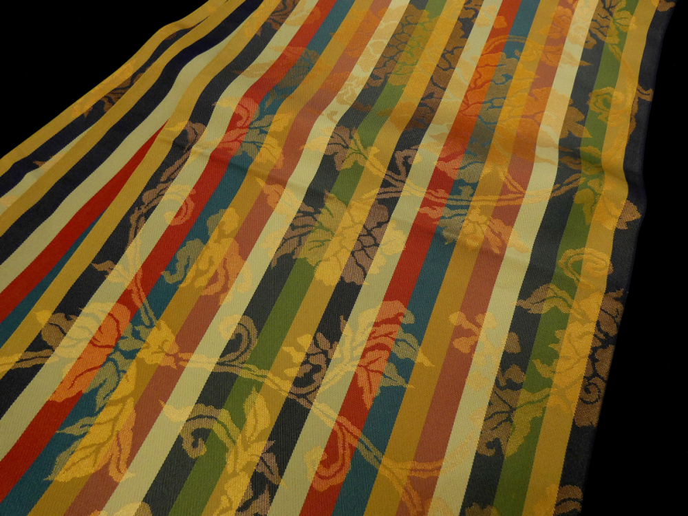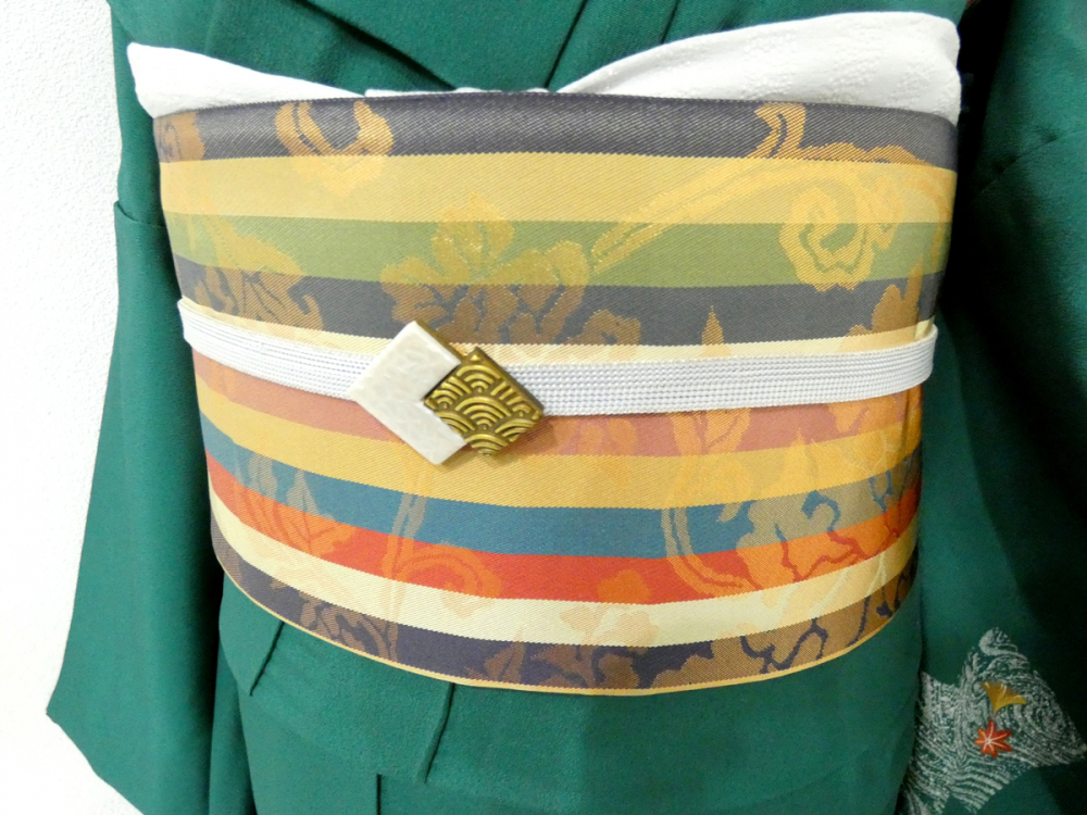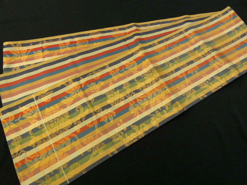 ◆雅星◆超美!!薄金色*シマシマ 唐草花文 正絹六通《袋帯》 販売価格 32,800円 (税込) 購入数 \送料無料/ カートに入れる この商品について問い合わせる お気に入り 特定商取引法に基づく表記 商品詳細 状態ランク: ★★★★★ ゴールドベースにカラフルな縞模様、金糸の花唐草模様が織り出されています。 上品且つ重厚感のある豪華なデザインです。 様々なお着物と合わせやすくフォーマルシーンで活躍してくれる逸品です。 綺麗目な正統派の着こなしと良く合い、訪問着から色無地まで振り幅広めに使える万能な袋帯です。 目立つシミ・汚れのない超美のお品です。 帯のみの価格で、着物・小物は含まれておりません。 サイズ・素材 長さ 31cm×431cm 素材 正絹 状態ランクについて ★★★★★ 超美品・新品・未使用品です。 ★★★★ 中古品ですがダメージの無いお品です。 ★★★ 薄ジミなどがありますが着用時には目立ちません。 ★★ 工夫次第で十分着用可能なお買い得品です ★ 大きめのシミがありますので、リメイク材料等にどうぞ。 _fo