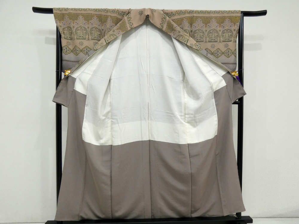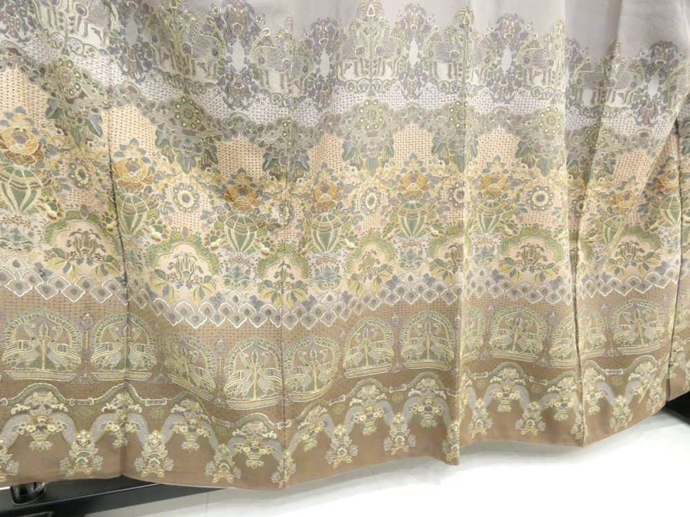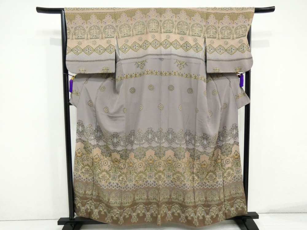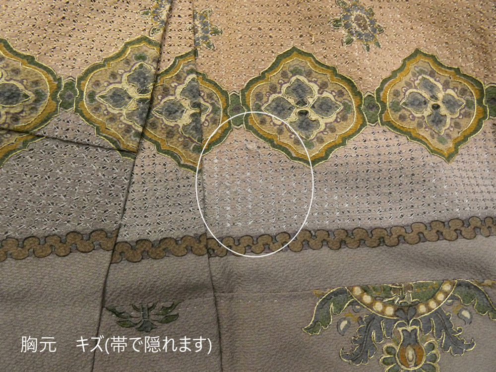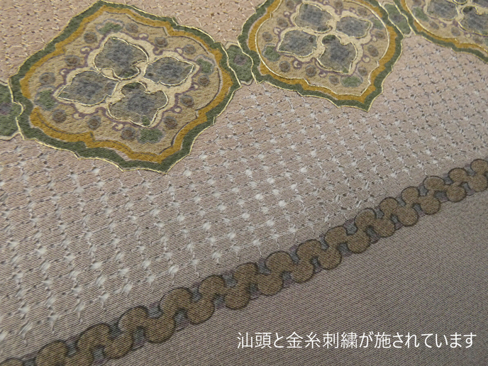 ◆雅星◆良品!!ベージュ*横段 鳥獣文 汕頭刺繍 訪問着 正絹袷 裄67丈160ロング 販売価格 148,000円 (税込) 購入数 \送料無料/ カートに入れる この商品について問い合わせる お気に入り 特定商取引法に基づく表記 コーディネートで使用している商品 ◆雅星◆未使用超美!!紫系*市松 鳳凰花丸紋 正絹六通《袋帯》 54,800円(税込) ★雅星本店オリジナル★新品!!プラチナ*シマシマ 銀通し 帯揚げ 正絹 【クリックポスト発送】 15,400円(税込) ★雅星本店オリジナル★新品!!プラチナ*帯締め 房付き四分紐 正絹【クリックポスト発送】 14,800円(税込) 商品詳細 状態ランク: ★★★ ベージュ×ココアベース、贅沢な刺繍ながらシックなお色目で落ち着きある重厚感があります。 オリエンタルな雰囲気の鳥獣文が描かれ、汕頭や金糸の刺繍がびっしりと施されています。 芸術を纏う贅沢感、奥深い大人の装いがお楽しみ頂ける訪問着です。 観劇や美術館、パーティにも是非! 《袷・広衿》身長155〜165cm位までの方にオススメです。 八掛裾に薄シミ、帯で隠れる部分にほつれが見られます。 他はシミ汚れの無い綺麗なお品です! 着物のみの価格で、帯・小物は含まれておりません。 サイズ・素材 裄 67cm 肩身丈 160cm 袖丈 48.5cm 袖幅 34cm 前幅 25cm 後ろ幅 30.5cm 内揚げ 20cm 縫込み(袖側) 4cm 縫込み(肩側) 4cm 素材 正絹 状態ランクについて ★★★★★ 超美品・新品・未使用品です。 ★★★★ 中古品ですがダメージの無いお品です。 ★★★ 薄ジミなどがありますが着用時には目立ちません。 ★★ 工夫次第で十分着用可能なお買い得品です ★ 大きめのシミがありますので、リメイク材料等にどうぞ。 _fo