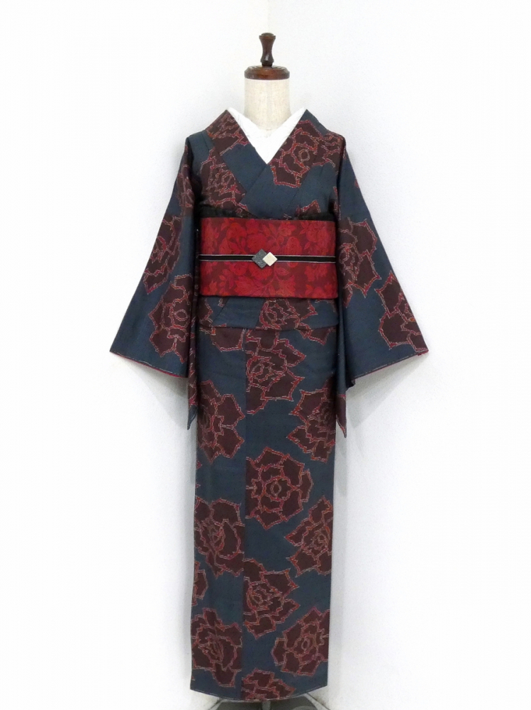 ◆雅星◆未使用美品!!藍色*大島紬 赤いバラ 正絹袷 裄63.5丈158 販売価格 27,800円 (税込) 購入数 \送料無料/ カートに入れる この商品について問い合わせる お気に入り 特定商取引法に基づく表記 コーディネートで使用している商品 ◆雅星◆良品!!ダークレッド*漆箔 花瓶 正絹 《京袋帯》 12,800円(税込) ★雅星本店オリジナル★新品!!ブラック*シマシマ 銀通し 帯揚げ 正絹 【クリックポスト発送】 15,400円(税込) ★雅星本店オリジナル★新品!!ブラック*帯締め 房付き四分紐 正絹【クリックポスト発送】 14,800円(税込) 商品詳細 状態ランク: ★★★ 大島紬ならではのシャリ感があり、着込むほど肌に馴染む着心地の良さが魅力◎ するりとしなやかな手触りの大島紬です。 藍色ベースに大きな赤い薔薇が織り出されています。 着崩れしにくく、ワンランク上の大人の普段着に最適な1枚です!! 《袷・広衿》身長153〜163cm位までの細身の方にオススメです。 裏地衿付近に画像の様なスナップボタンの錆が見られますが、 表地はしつけ付き、シミ汚れの無い綺麗なお品です。 着物のみの価格で、帯・小物は含まれておりません。 サイズ・素材 裄 63.5cm 肩身丈 158cm 袖丈 49cm 袖幅 33cm 前幅 23cm 後ろ幅 28.5cm 内揚げ 8cm 縫込み(袖側) 3.5cm 縫込み(肩側) 3.5cm 素材 正絹 状態ランクについて ★★★★★ 超美品・新品・未使用品です。 ★★★★ 中古品ですがダメージの無いお品です。 ★★★ 薄ジミなどがありますが着用時には目立ちません。 ★★ 工夫次第で十分着用可能なお買い得品です ★ 大きめのシミがありますので、リメイク材料等にどうぞ。
