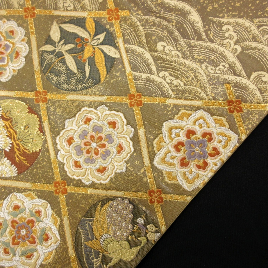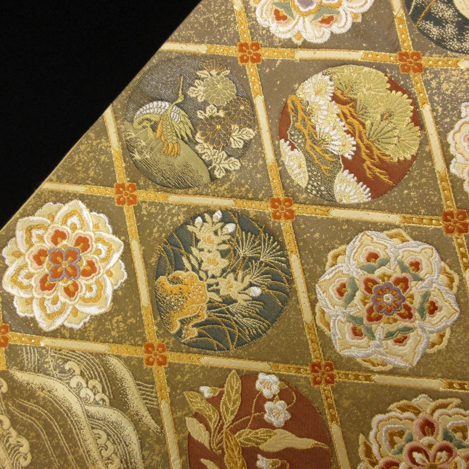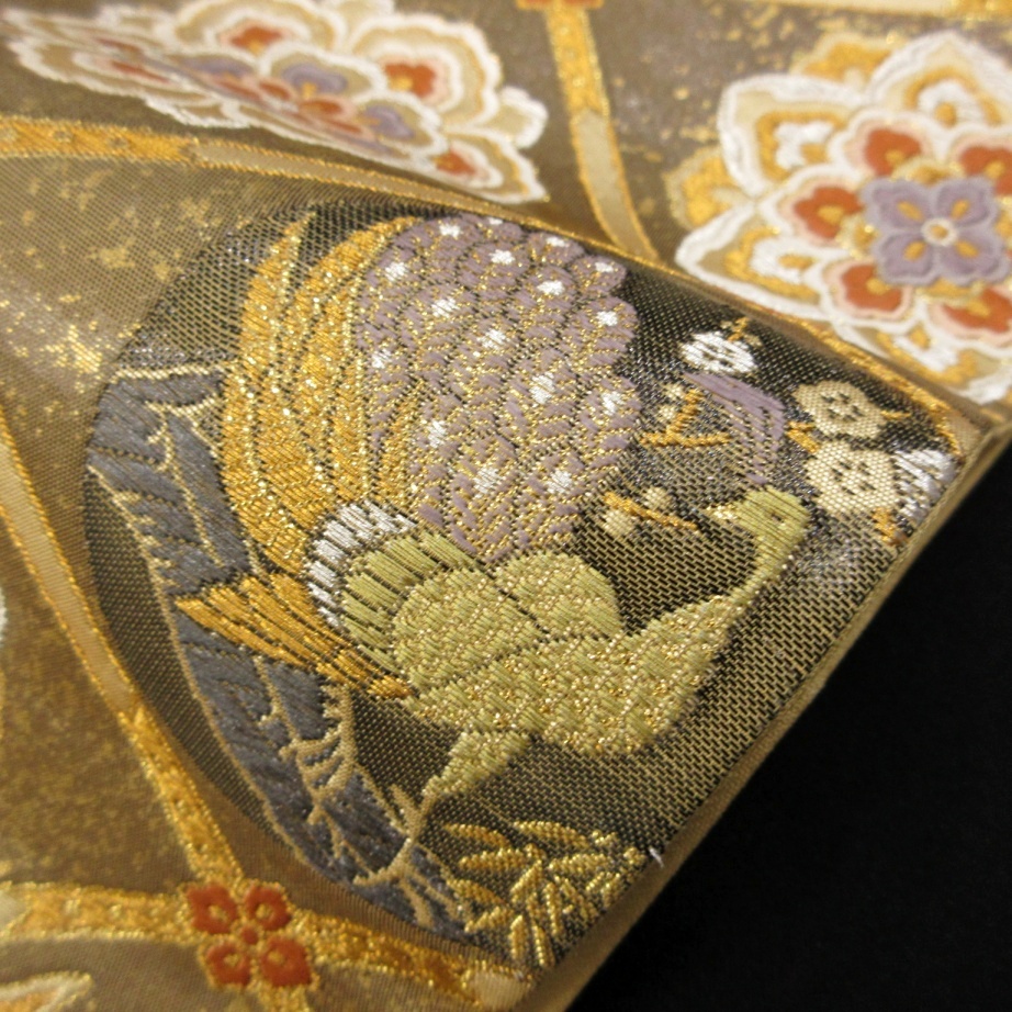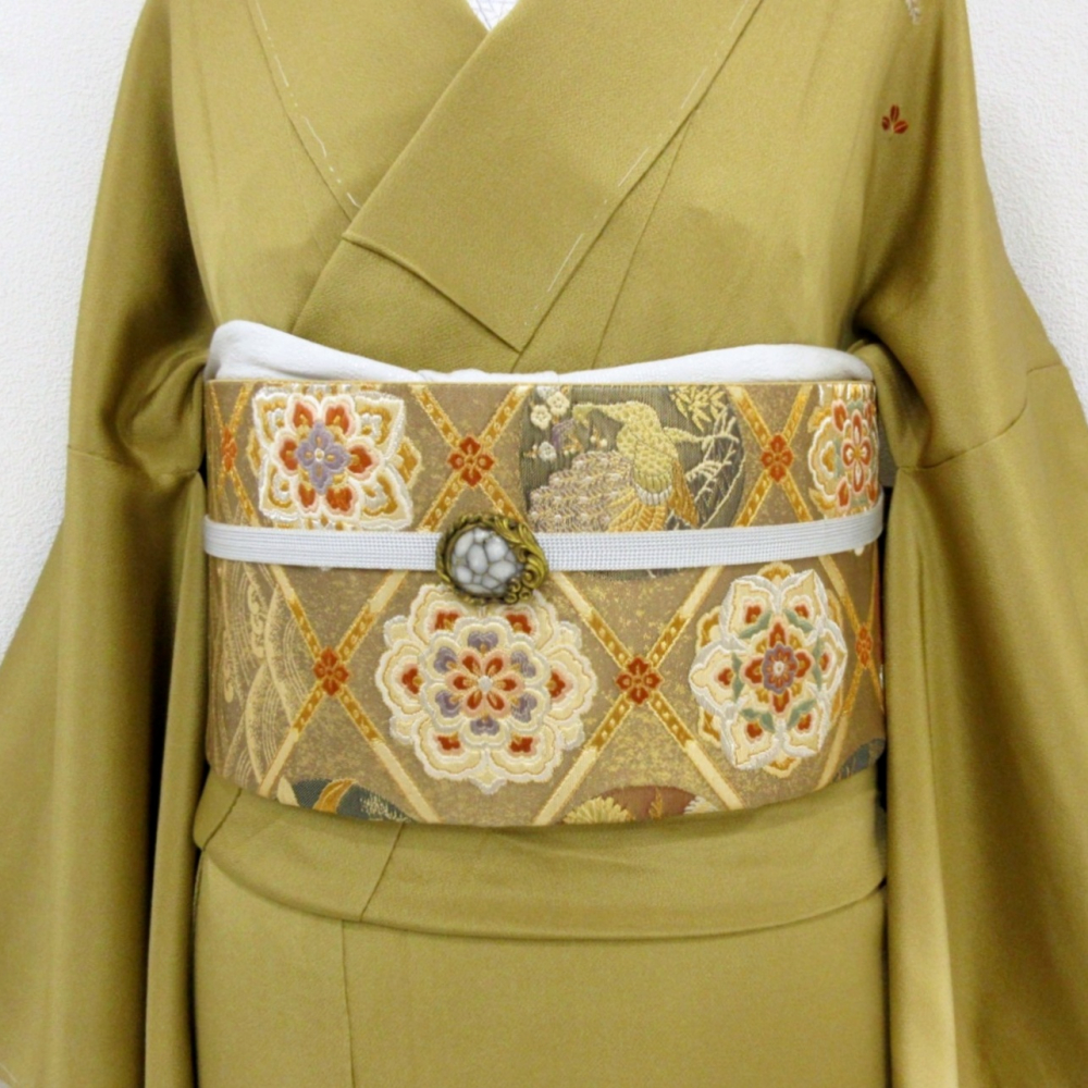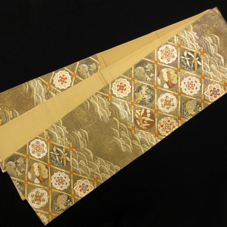 ■雅星■美品!!ゴールド*箔織 唐織 格天井 宝相華 花丸文♪正絹六通《袋帯》 販売価格 29,800円 (税込) 購入数 \送料無料/ カートに入れる この商品について問い合わせる お気に入り 特定商取引法に基づく表記 商品詳細 状態ランク: ★★★ ゴールドベースに格天井に唐織で宝相華・花丸文、煌びやかで古典的な華やかさ♪ 正統派のフォーマルシーンからパーティまで幅広くお楽しみ頂ける上質な袋帯です! 締め跡はありますが、柄部分に目立つシミ・汚れのない綺麗なお品です! 帯のみの価格で、着物・小物は含まれておりません。 サイズ・素材 長さ 30.5cm×426cm 素材 正絹 状態ランクについて ★★★★★ 超美品・新品・未使用品です。 ★★★★ 中古品ですがダメージの無いお品です。 ★★★ 薄ジミなどがありますが着用時には目立ちません。 ★★ 工夫次第で十分着用可能なお買い得品です ★ 大きめのシミがありますので、リメイク材料等にどうぞ。 _fo
