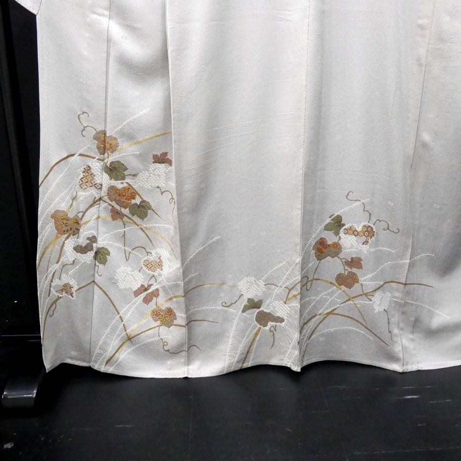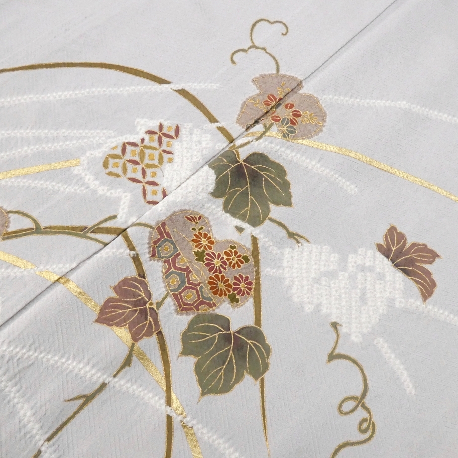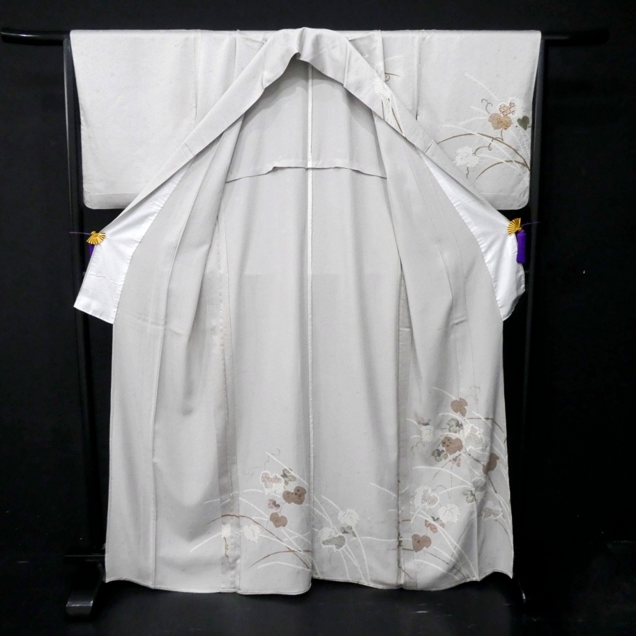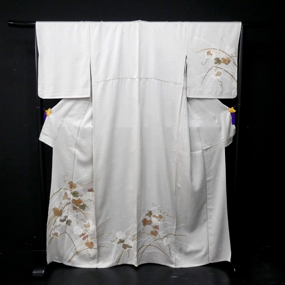 〓雅星〓良品!!白鼠色*絞り模様 蔦の葉文 付下げ訪問着 正絹単衣 裄66丈166ロング 販売価格 36,800円 (税込) 購入数 \送料無料/ カートに入れる この商品について問い合わせる お気に入り 特定商取引法に基づく表記 コーディネートで使用している商品 〓雅星〓美品!!江戸鼠色*波飛沫文♪正絹《袋帯》 36,800円(税込) ★雅星本店オリジナル★新品!!プラチナ*シマシマ 銀通し 帯揚げ 正絹 【クリックポスト発送】 15,400円(税込) ★雅星本店オリジナル★新品!!プラチナ*帯締め 房付き四分紐 正絹【クリックポスト発送】 14,800円(税込) 商品詳細 状態ランク: ★★★ しなやかな手触りで艶感が上品な正絹地。 薄いグレーベースに紗綾型の地紋、絞りと染めであしらわれた蔦の葉が落着きがあり上品な印象。 こだわりの帯や小物も良く映え、 正統派の着こなしと相性の良い付下げ訪問着です。 《単衣・広衿》身長161〜171cm位までの方にオススメです。 衿に軽い筋汚れ・紐の締め跡はありますが、着後に酷く目立つダメージは見られません。 その分お値下げしていますので、色柄を気に入ってくださった方に是非! 着物のみの価格で、帯・小物は含まれておりません。 サイズ・素材 裄 66cm 肩身丈 166cm 袖丈 49cm 袖幅 33.5cm 前幅 26cm 後ろ幅 31cm 内揚げ 0cm 縫込み(袖側) 1.5cm 縫込み(肩側) 2cm 素材 正絹 状態ランクについて ★★★★★ 超美品・新品・未使用品です。 ★★★★ 中古品ですがダメージの無いお品です。 ★★★ 薄ジミなどがありますが着用時には目立ちません。 ★★ 工夫次第で十分着用可能なお買い得品です ★ 大きめのシミがありますので、リメイク材料等にどうぞ。 _fo _hito