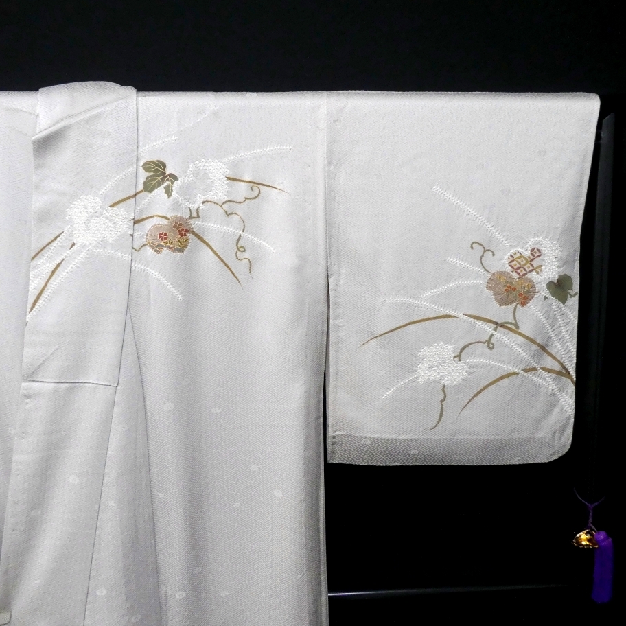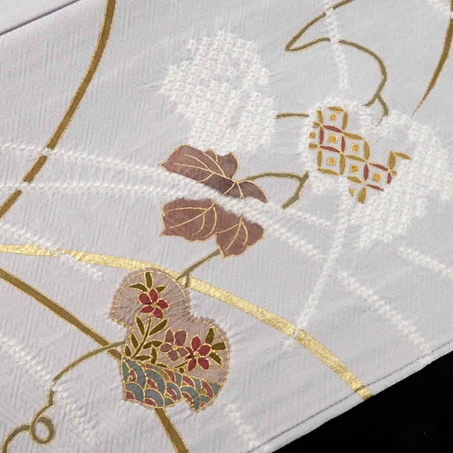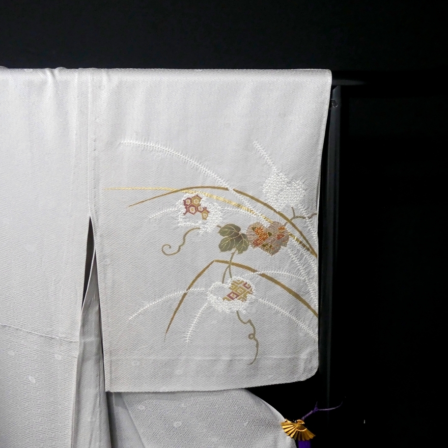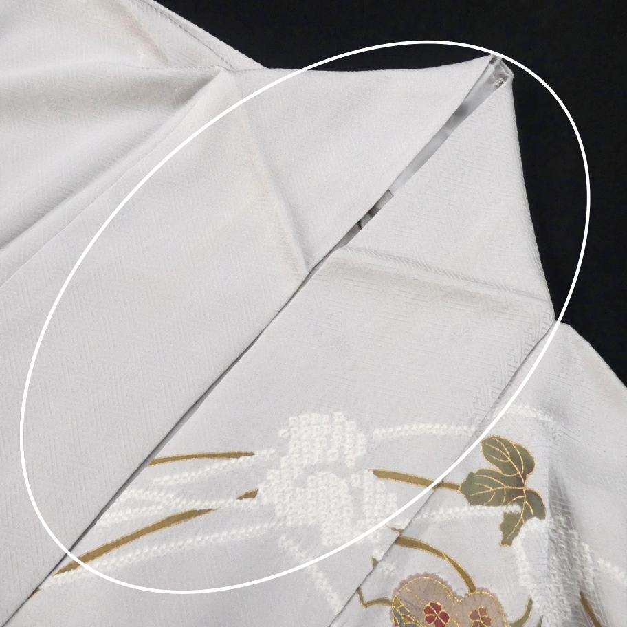〓雅星〓良品!!白鼠色*絞り模様 蔦の葉文 付下げ訪問着 正絹単衣 裄66丈166ロング 販売価格 36,800円 (税込) 購入数 \送料無料/ カートに入れる この商品について問い合わせる お気に入り 特定商取引法に基づく表記 コーディネートで使用している商品 〓雅星〓美品!!江戸鼠色*波飛沫文♪正絹《袋帯》 36,800円(税込) ★雅星本店オリジナル★新品!!プラチナ*シマシマ 銀通し 帯揚げ 正絹 【クリックポスト発送】 15,400円(税込) ★雅星本店オリジナル★新品!!プラチナ*帯締め 房付き四分紐 正絹【クリックポスト発送】 14,800円(税込) 商品詳細 状態ランク: ★★★ しなやかな手触りで艶感が上品な正絹地。 薄いグレーベースに紗綾型の地紋、絞りと染めであしらわれた蔦の葉が落着きがあり上品な印象。 こだわりの帯や小物も良く映え、 正統派の着こなしと相性の良い付下げ訪問着です。 《単衣・広衿》身長161〜171cm位までの方にオススメです。 衿に軽い筋汚れ・紐の締め跡はありますが、着後に酷く目立つダメージは見られません。 その分お値下げしていますので、色柄を気に入ってくださった方に是非! 着物のみの価格で、帯・小物は含まれておりません。 サイズ・素材 裄 66cm 肩身丈 166cm 袖丈 49cm 袖幅 33.5cm 前幅 26cm 後ろ幅 31cm 内揚げ 0cm 縫込み(袖側) 1.5cm 縫込み(肩側) 2cm 素材 正絹 状態ランクについて ★★★★★ 超美品・新品・未使用品です。 ★★★★ 中古品ですがダメージの無いお品です。 ★★★ 薄ジミなどがありますが着用時には目立ちません。 ★★ 工夫次第で十分着用可能なお買い得品です ★ 大きめのシミがありますので、リメイク材料等にどうぞ。 _fo _hito