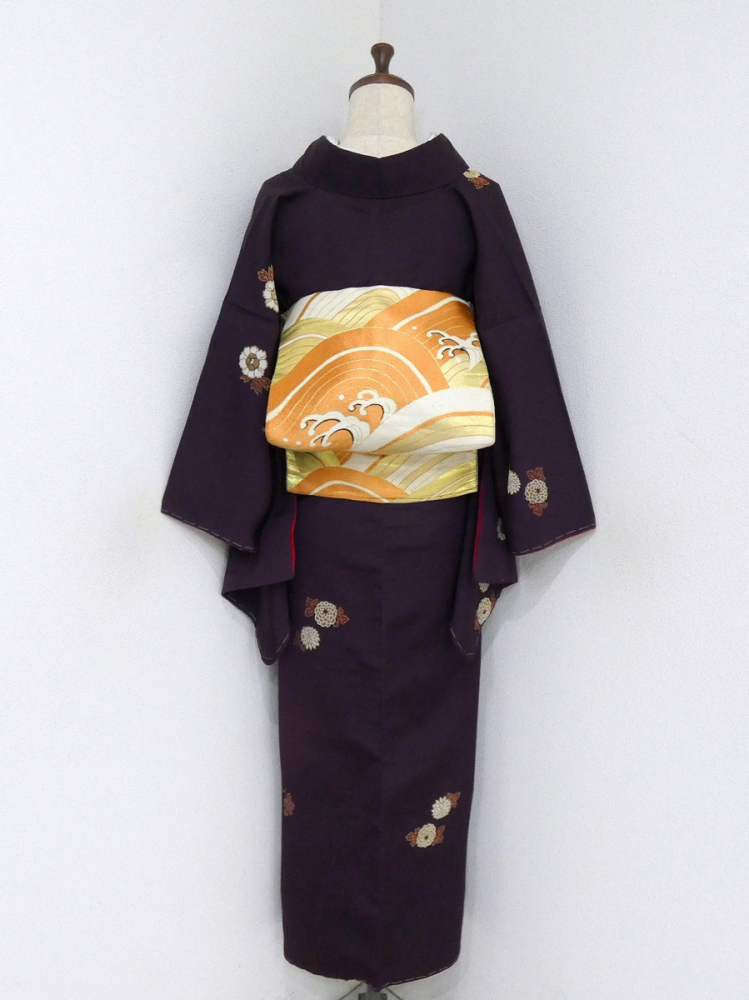 ◆雅星◆レトロ!!深紫色*花文 お召し 正絹袷 裄62.5丈151 販売価格 17,800円 (税込) 購入数 \送料無料/ カートに入れる この商品について問い合わせる お気に入り 特定商取引法に基づく表記 コーディネートで使用している商品 ◆雅星◆アンティーク!!白×オレンジ*青海波 正絹九寸《名古屋帯》 14,800円(税込) ★雅星本店オリジナル★新品*リバーシブル 縁あり三分紐【クリックポスト発送】 6,600円(税込) 商品詳細 状態ランク: ★★★ シボのない滑らかなお召し地、深紫ベースに飛び柄の花模様が織り出されています。 ポップな色柄が苦手な大人の女性にもおススメな1枚! クール・スタイリッシュな着こなしが楽しめるお召しキモノです。 《袷・広衿》身長〜156cm位までの方にオススメです。 それ以上の方は対丈や洋服ミックス、ミセル裾除けホムシュヘムなどと合わせても♪ 衿元に画像の様なスレ汚れが見られますが、 着用時には目立ちにくいです。 時代物に慣れた方でしたら十分にお気軽にお楽しみ頂けます。 着物のみの価格で、帯・小物は含まれておりません。 サイズ・素材 裄 62.5cm 肩身丈 151cm 袖丈 60cm 袖幅 31.5cm 前幅 22cm 後ろ幅 28.5cm 内揚げ 0cm 縫込み(袖側) 1cm 縫込み(肩側) 1cm 素材 正絹 状態ランクについて ★★★★★ 超美品・新品・未使用品です。 ★★★★ 中古品ですがダメージの無いお品です。 ★★★ 薄ジミなどがありますが着用時には目立ちません。 ★★ 工夫次第で十分着用可能なお買い得品です ★ 大きめのシミがありますので、リメイク材料等にどうぞ。 _an _mono