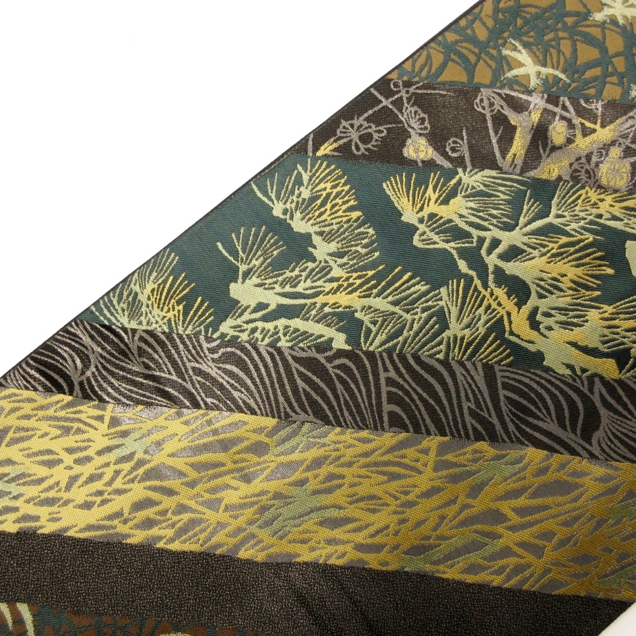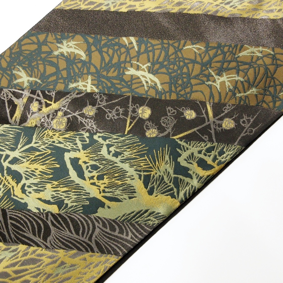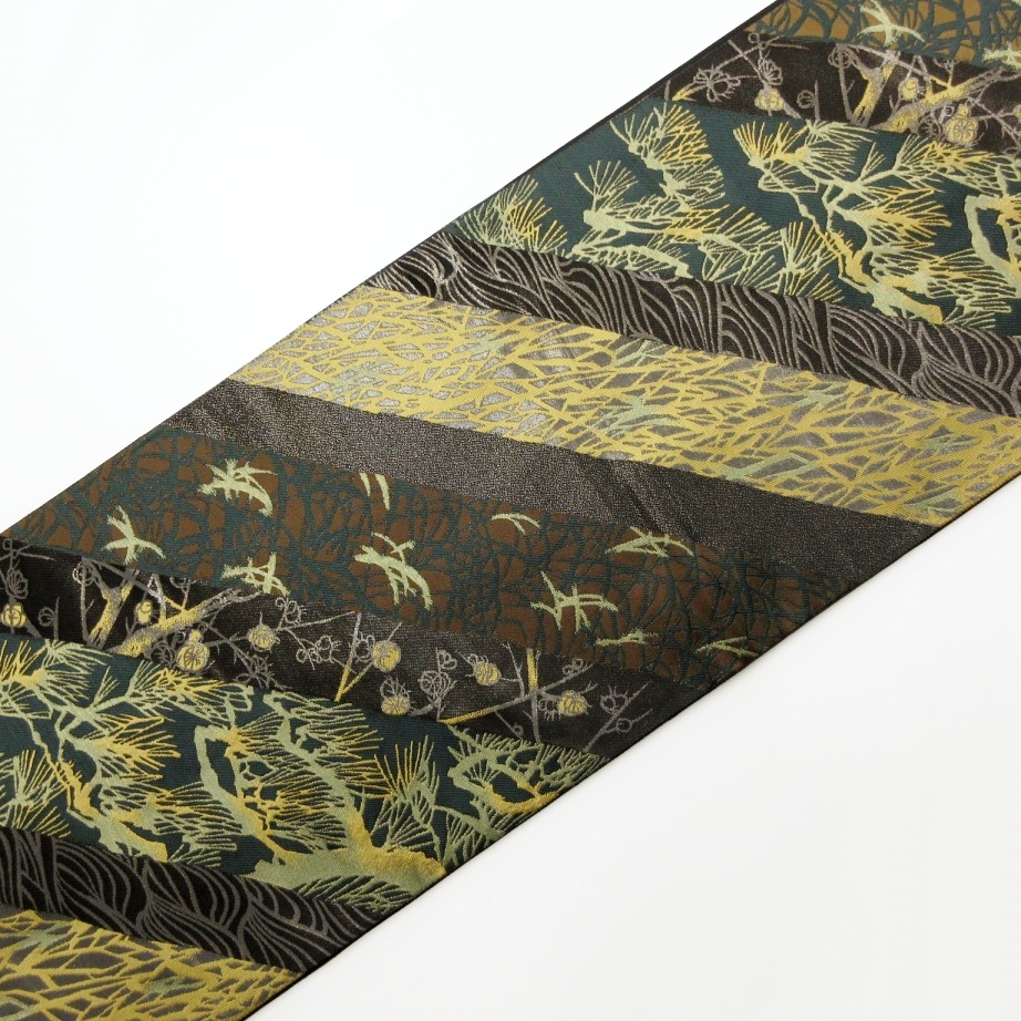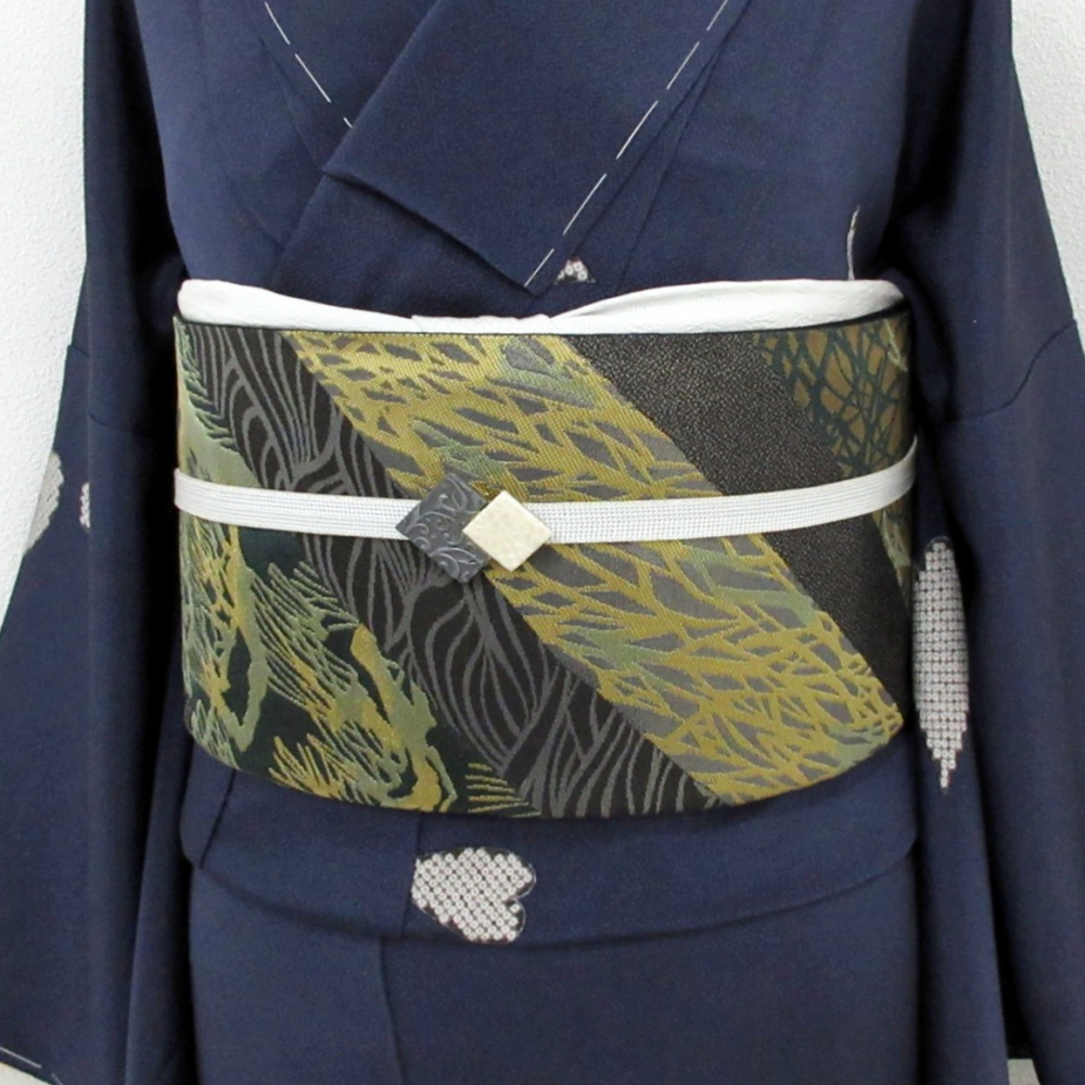 ■雅星■美品!!ダークトーン*斜め縞 梅松文♪正絹六通《袋帯》 販売価格 34,800円 (税込) 購入数 \送料無料/ カートに入れる この商品について問い合わせる お気に入り 特定商取引法に基づく表記 商品詳細 状態ランク: ★★★★ ダークトーンーベース、重厚感はありますが見た目とは反して薄手で軽い締め心地。 松葉・梅・芝草、荒波などの斜め縞、シックで落ち着きのある上品な華やかさ。 綺麗目な正統派の着こなしはもちろん、 軽めの訪問着から上質な小紋まで様々なシーンで活躍してくれる袋帯です。 目立つシミ・汚れのない綺麗なお品です。 帯のみの価格で、着物・小物は含まれておりません。 サイズ・素材 長さ 31.5cm×444cm 素材 正絹 状態ランクについて ★★★★★ 超美品・新品・未使用品です。 ★★★★ 中古品ですがダメージの無いお品です。 ★★★ 薄ジミなどがありますが着用時には目立ちません。 ★★ 工夫次第で十分着用可能なお買い得品です ★ 大きめのシミがありますので、リメイク材料等にどうぞ。 _fo