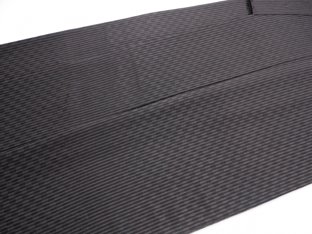 ややパープルよりのブラックベース、縦シマシマラインによく見ると市松模様があしらわれたクールなデザイン。