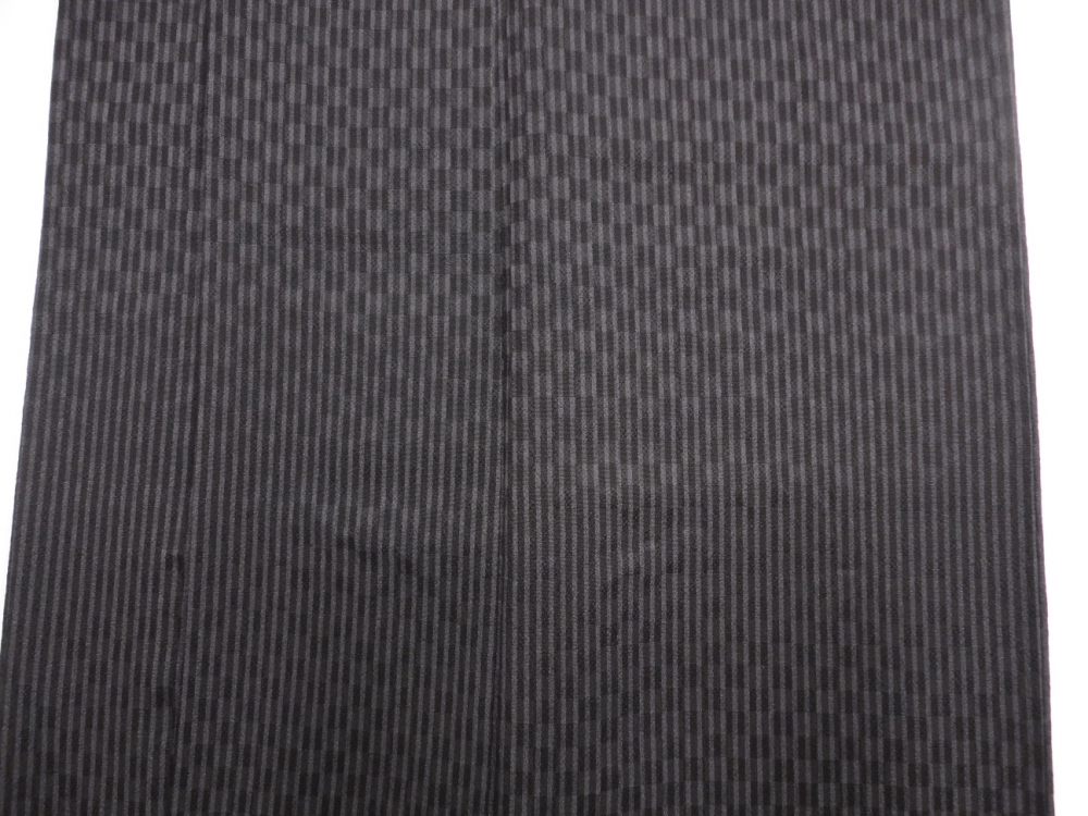 ○雅星○美品!!ブラック×パープル*暈し 縦縞ライン 市松♪小紋 正絹袷 裄67丈167ロング