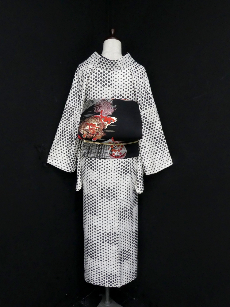 〓雅星〓超美!!モノトーン*鈴♪洗える小紋 袷 裄64丈158 販売価格 22,800円 (税込) sold out この商品について問い合わせる お気に入り 特定商取引法に基づく表記 コーディネートで使用している商品 ★雅星本店オリジナル★新品!!ブラック*シマシマ 銀通し 帯揚げ 正絹 【クリックポスト発送】 15,400円(税込) ★雅星本店オリジナル★新品*リバーシブル 縁あり三分紐【クリックポスト発送】 6,600円(税込) 商品詳細 状態ランク: ★★★★ 人気のモノトーンベース、サイズがグラデーション状にあしらわれた鈴文が小粋で可愛い♪ 清潔感と遊び心を兼ね備えた洗える小紋です。 天気を気にせずご自宅でお手入れが出来ます! 《袷・広衿》身長153〜163cm位までの方にオススメです。 目立つシミ・汚れはなく、大変状態の良い綺麗なお品です。 着物のみの価格で、帯・小物は含まれておりません。 サイズ・素材 裄 64cm 肩身丈 158cm 袖丈 49.5cm 袖幅 32cm 前幅 24cm 後ろ幅 31cm 内揚げ 0cm 縫込み(袖側) 2.5cm 縫込み(肩側) 2cm 素材 ポリエステル 状態ランクについて ★★★★★ 超美品・新品・未使用品です。 ★★★★ 中古品ですがダメージの無いお品です。 ★★★ 薄ジミなどがありますが着用時には目立ちません。 ★★ 工夫次第で十分着用可能なお買い得品です ★ 大きめのシミがありますので、リメイク材料等にどうぞ。 _mono