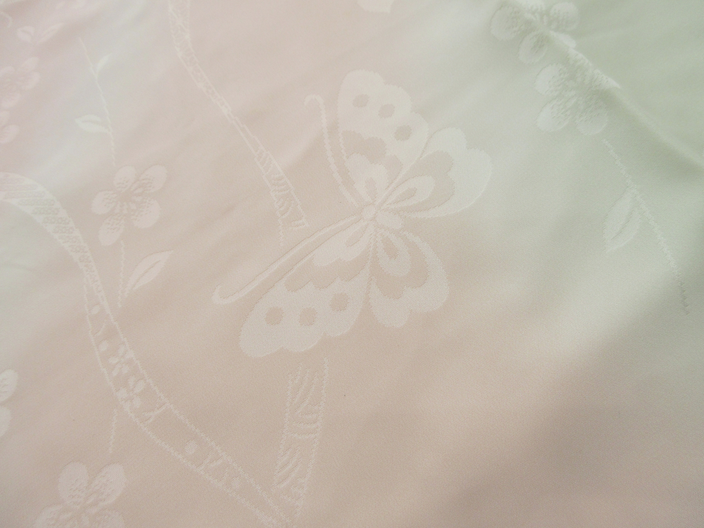 *雅星*未使用超美!!ピンク【東京ますいわ屋】蝶々 梅♪長襦袢 正絹 単衣 裄63.5丈132袖丈48 販売価格 16,800円 (税込) 購入数 \送料無料/ カートに入れる この商品について問い合わせる お気に入り 特定商取引法に基づく表記 商品詳細 状態ランク: ★★★★★ ●単衣無双袖仕立て● 3シーズン通して着られる、着用時期の長い襦袢です。 確かな品質【東京ますいわ屋】のお品です。 するりとしなやかな手触りの正絹地。 ピンクベースにところどころシアンのグラデーションが上品♪ 全体に施された、蝶々と梅が可愛らしい◎ しつけ・半衿・居敷当て付き! シミ汚れのない未使用の綺麗なお品物です。 着物のみの価格で、帯・小物は含まれておりません。 サイズ・素材 裄 63.5cm 肩身丈 132cm 袖丈 48cm 袖幅 32cm 前幅 -cm 後ろ幅 31cm 内揚げ 27cm 縫込み(袖側) 1.5cm 縫込み(肩側) 3cm 素材 正絹 状態ランクについて ★★★★★ 超美品・新品・未使用品です。 ★★★★ 中古品ですがダメージの無いお品です。 ★★★ 薄ジミなどがありますが着用時には目立ちません。 ★★ 工夫次第で十分着用可能なお買い得品です ★ 大きめのシミがありますので、リメイク材料等にどうぞ。