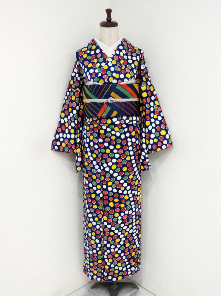 ○雅星○未使用良品!!インディゴブルー*カラフルドット♪縮緬小紋 正絹袷 裄63.5丈162ロング 販売価格 22,800円 (税込) 購入数 \送料無料/ カートに入れる この商品について問い合わせる お気に入り 特定商取引法に基づく表記 コーディネートで使用している商品 ★雅星本店オリジナル★新品!!プラチナ*シマシマ 銀通し 帯揚げ 正絹 【クリックポスト発送】 15,400円(税込) ★雅星本店オリジナル★新品!!プラチナ*帯締め 房付き四分紐 正絹【クリックポスト発送】 14,800円(税込) 商品詳細 状態ランク: ★★★ 濃い青色ベースにカラフルなドット模様が華やかな印象◎ しなやかな手触りで落ち感も綺麗、ずっしり上質な縮緬地です。 程良く個性の光るスタイリングが楽しめる小紋です。 《袷・広衿》身長157〜167cm位までの方にオススメです。 しつけ付き! 画像のような薄シミが見られますが色柄がしっかりしているので着用時気になりませんでした。 お気軽にいかがでしょうか? 着物のみの価格で、帯・小物は含まれておりません。 サイズ・素材 裄 63.5cm 肩身丈 162cm 袖丈 49.5cm 袖幅 32.5cm 前幅 24cm 後ろ幅 28cm 内揚げ 0cm 縫込み(袖側) 3cm 縫込み(肩側) 3cm 素材 正絹 状態ランクについて ★★★★★ 超美品・新品・未使用品です。 ★★★★ 中古品ですがダメージの無いお品です。 ★★★ 薄ジミなどがありますが着用時には目立ちません。 ★★ 工夫次第で十分着用可能なお買い得品です ★ 大きめのシミがありますので、リメイク材料等にどうぞ。