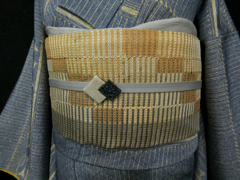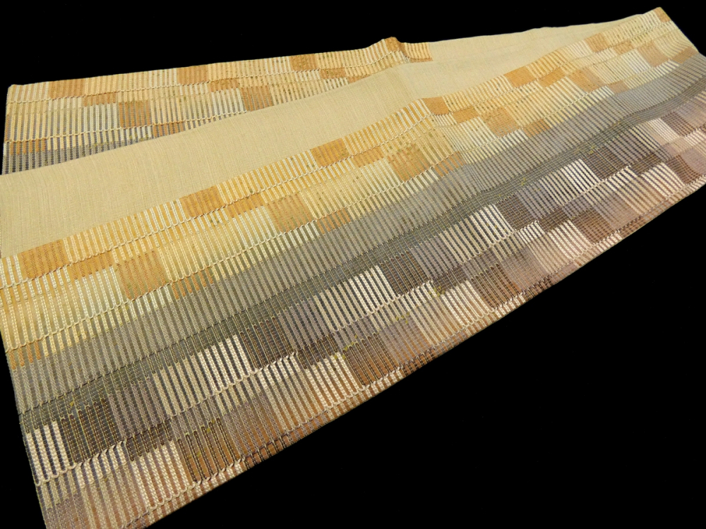◆雅星◆超美!!ベージュ系*変わり織 ブロック 正絹《洒落袋帯》 販売価格 32,800円 (税込) 購入数 \送料無料/ カートに入れる この商品について問い合わせる お気に入り 特定商取引法に基づく表記 商品詳細 状態ランク: ★★★★ 立体感のある横段やブロックの織模様、 抽象的な柄なので様々なコーディネートに使いやすいです。 合わせるお着物をさりげなく引き立てつつ格上げしてくれる洒落袋帯です。 軽い締めあとは見られますが、シミ・汚れのない未使用超美のお品です。 帯のみの価格で、着物・小物は含まれておりません。 サイズ・素材 長さ 31cm×340cm 素材 正絹 状態ランクについて ★★★★★ 超美品・新品・未使用品です。 ★★★★ 中古品ですがダメージの無いお品です。 ★★★ 薄ジミなどがありますが着用時には目立ちません。 ★★ 工夫次第で十分着用可能なお買い得品です ★ 大きめのシミがありますので、リメイク材料等にどうぞ。