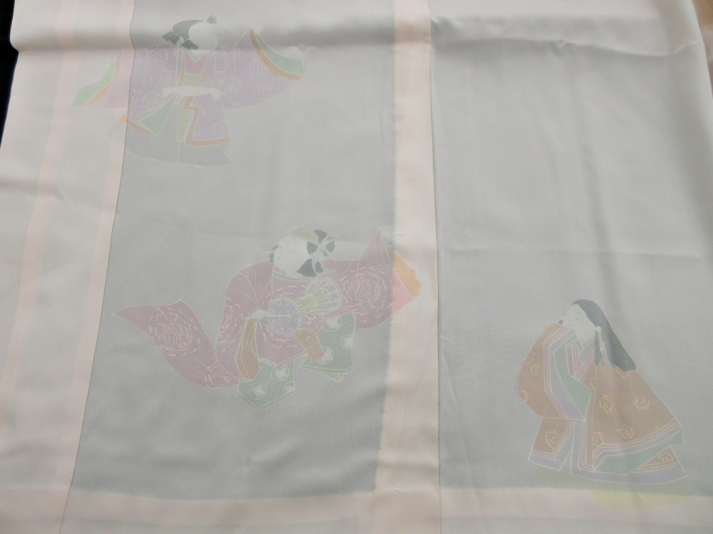 落ち着いたピンクに、やまと絵や源氏絵のように描かれた人物が上品♪