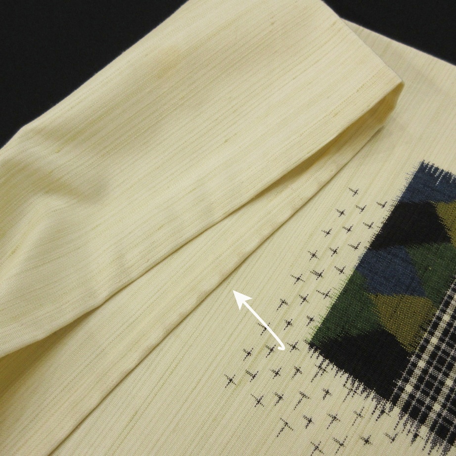■雅星■良品!!ベージュ*絣 角模様♪正絹紬 単衣 裄63丈157 販売価格 17,800円 (税込) 購入数 \送料無料/ カートに入れる この商品について問い合わせる お気に入り 特定商取引法に基づく表記 コーディネートで使用している商品 ■雅星■美品!!グレー*作家物 風景♪縮緬 正絹九寸 染め《名古屋帯》 26,800円(税込) ◆雅星本店オリジナル◆新品!!サファリ*パイソン 友禅帯揚げ 正絹縮緬 【クリックポスト発送】 15,400円(税込) ★雅星本店オリジナル★新品*リバーシブル 縁あり三分紐【クリックポスト発送】 6,600円(税込) 商品詳細 状態ランク: ★★★ さらりとやわらかい正絹地、優しく気品のある風合いと着心地をお楽しみ頂けます。 ベージュベースにシンプルな角模様。 ベーシックなデザインなので飽きが来ず、凛とした粋な着こなしが楽しめます。 帯次第で正統派からカジュアルコーデまで幅広くお楽しみ頂ける単衣の普段着紬です。 《単衣・広衿》身長152〜162cm位までの細身の方にオススメです。 画像のような点シミや薄シミが見られますが軽度なので撮影時は全く目立ちませんでした。 ぐっとお値下げしていますので、お稽古着やワンマイル着物としてお気軽に如何でしょうか。 着物のみの価格で、帯・小物は含まれておりません。 サイズ・素材 裄 63cm 肩身丈 157cm 袖丈 47.5cm 袖幅 32cm 前幅 23cm 後ろ幅 28cm 内揚げ 0cm 縫込み(袖側) 2cm 縫込み(肩側) 2cm 素材 正絹 状態ランクについて ★★★★★ 超美品・新品・未使用品です。 ★★★★ 中古品ですがダメージの無いお品です。 ★★★ 薄ジミなどがありますが着用時には目立ちません。 ★★ 工夫次第で十分着用可能なお買い得品です ★ 大きめのシミがありますので、リメイク材料等にどうぞ。 _hito