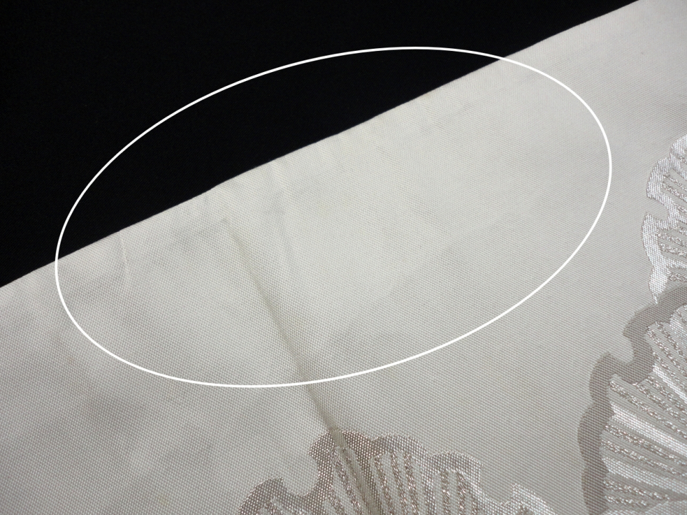 ○雅星○良品!!生成り色*雪輪取り 松 青海波♪正絹六通《袋帯》 販売価格 32,800円 (税込) 購入数 \送料無料/ カートに入れる この商品について問い合わせる お気に入り 特定商取引法に基づく表記 商品詳細 状態ランク: ★★★ 金銀糸であしらわれた雪輪取りに松が上品且つ重厚感のある豪華なデザイン。 オフ白ベースに多色使いの色柄なので、様々なお着物と合わせやすくフォーマルシーンで活躍してくれる逸品です。 綺麗目な正統派の着こなしと良く合い、訪問着から色無地まで振り幅広めに使える万能な袋帯です。 画像の様にお太鼓下に薄シミ、左側面に全体的に薄汚れみられますが軽度なので 着用時気になりにくく感じました。 帯のみの価格で、着物・小物は含まれておりません。 サイズ・素材 長さ 31cm×443.5cm 素材 正絹 状態ランクについて ★★★★★ 超美品・新品・未使用品です。 ★★★★ 中古品ですがダメージの無いお品です。 ★★★ 薄ジミなどがありますが着用時には目立ちません。 ★★ 工夫次第で十分着用可能なお買い得品です ★ 大きめのシミがありますので、リメイク材料等にどうぞ。 _fo