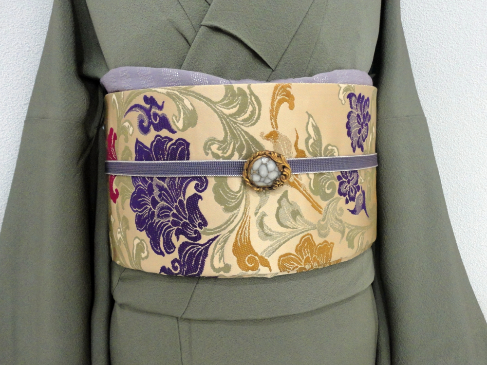 ○雅星○超美!!ブロンズ*ボタニカル♪正絹六通《洒落袋帯》 販売価格 32,800円 (税込) 購入数 \送料無料/ カートに入れる この商品について問い合わせる お気に入り 特定商取引法に基づく表記 商品詳細 状態ランク: ★★★★ ブロンズベースに花模様が控えめな上品さ♪ お着物の柄とケンカしにくく合わせやすいので使い勝手◎ しなやかな手触りで軽く、大人の普段着コーデに最適な洒落袋帯です。 目立つシミ汚れのない綺麗なお品物です◎ 帯のみの価格で、着物・小物は含まれておりません。 サイズ・素材 長さ 31cm×442.5cm 素材 正絹 状態ランクについて ★★★★★ 超美品・新品・未使用品です。 ★★★★ 中古品ですがダメージの無いお品です。 ★★★ 薄ジミなどがありますが着用時には目立ちません。 ★★ 工夫次第で十分着用可能なお買い得品です ★ 大きめのシミがありますので、リメイク材料等にどうぞ。