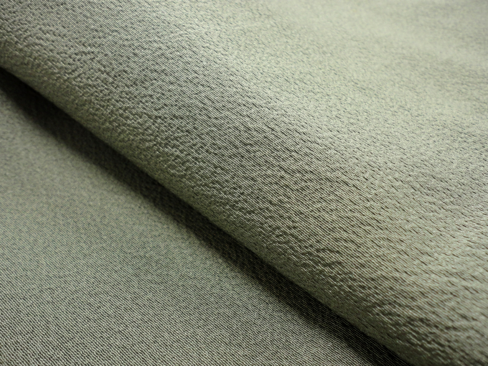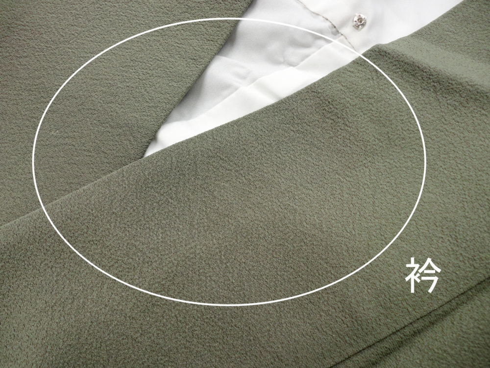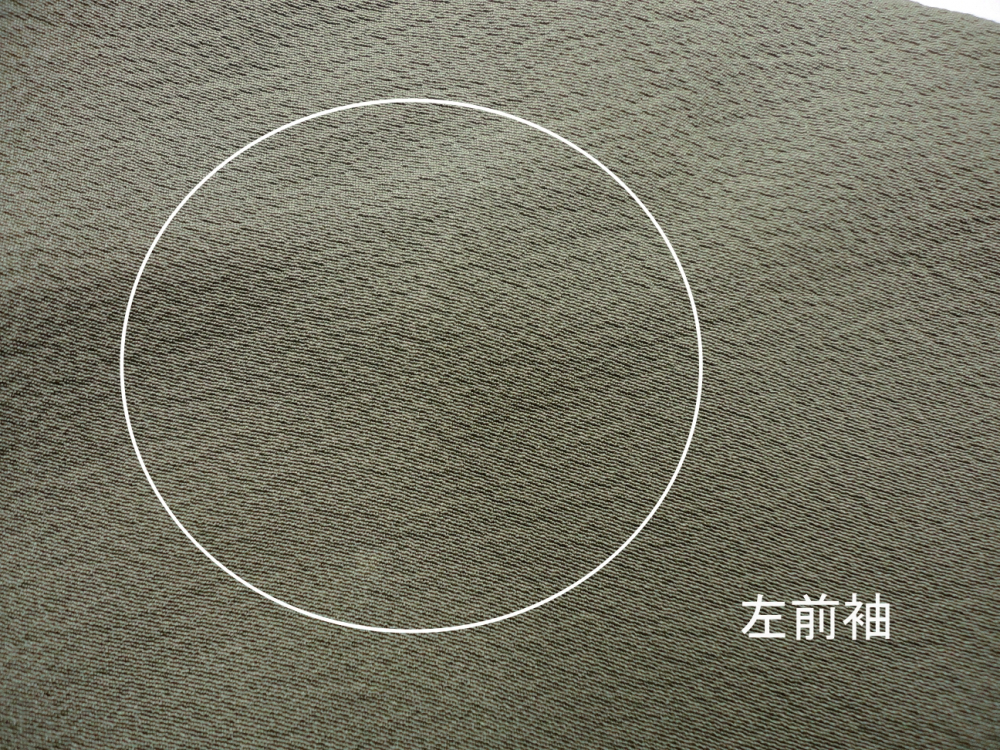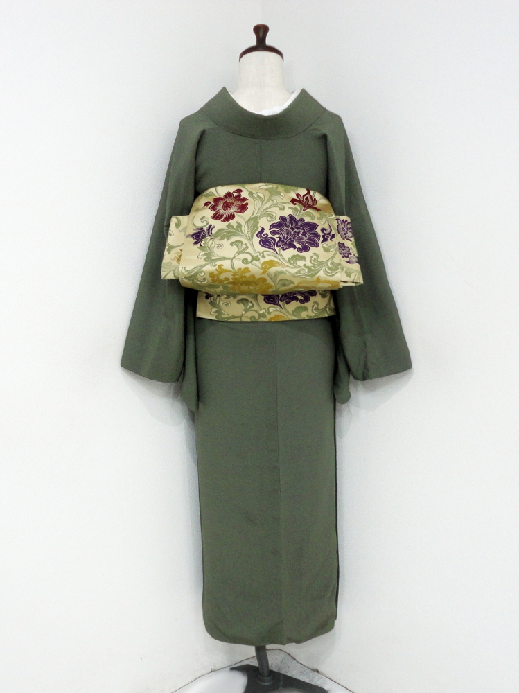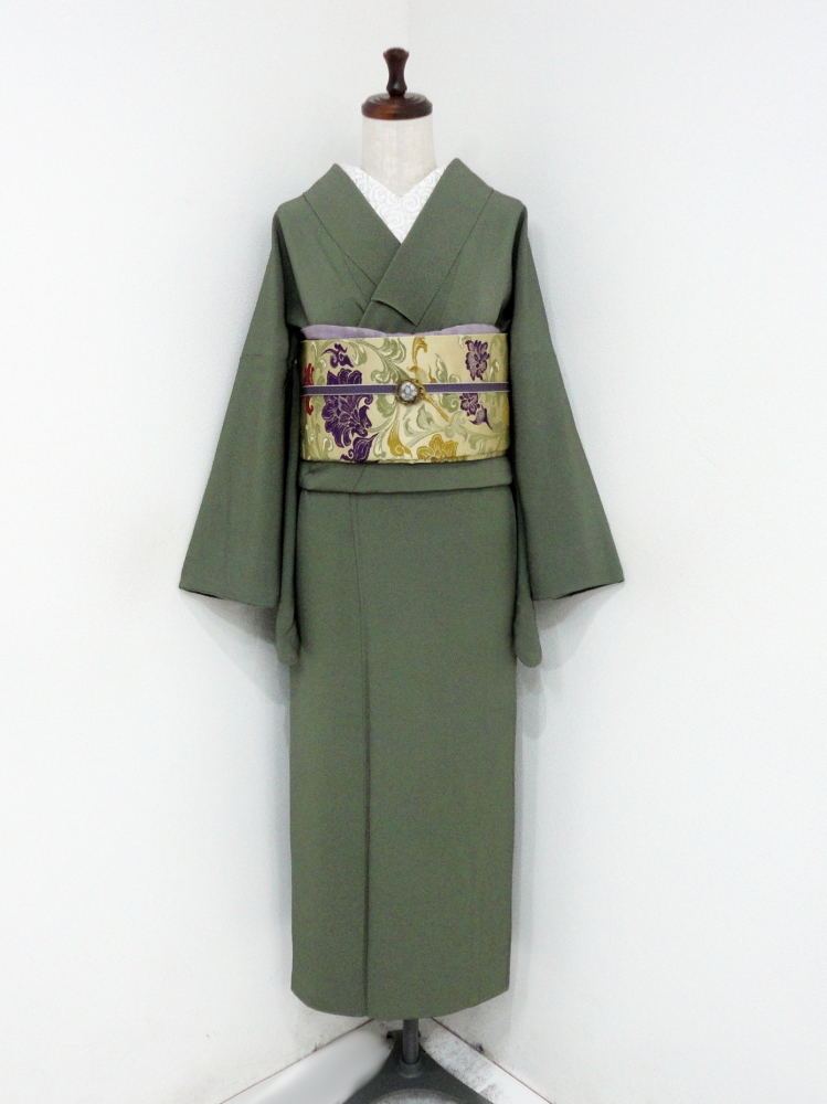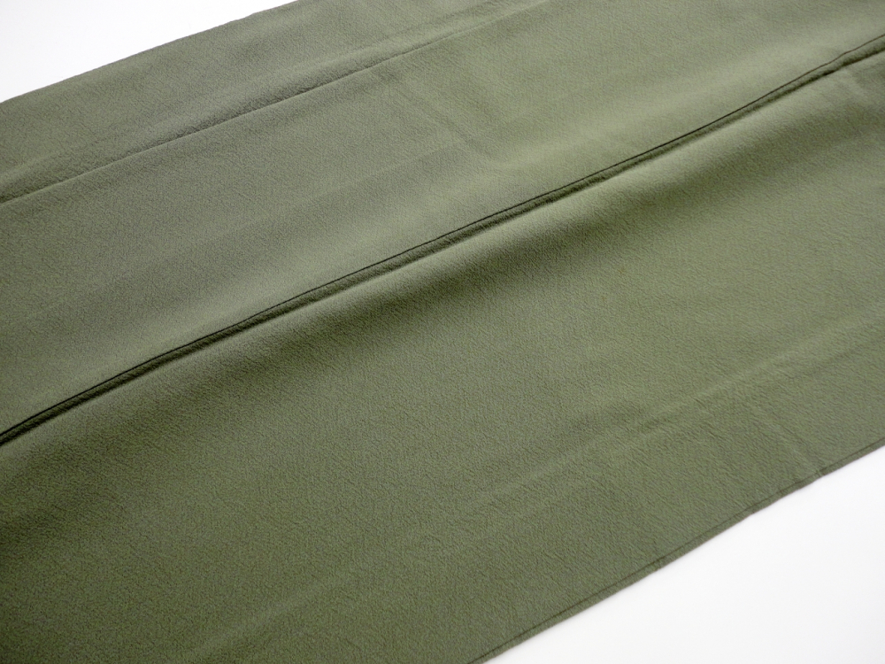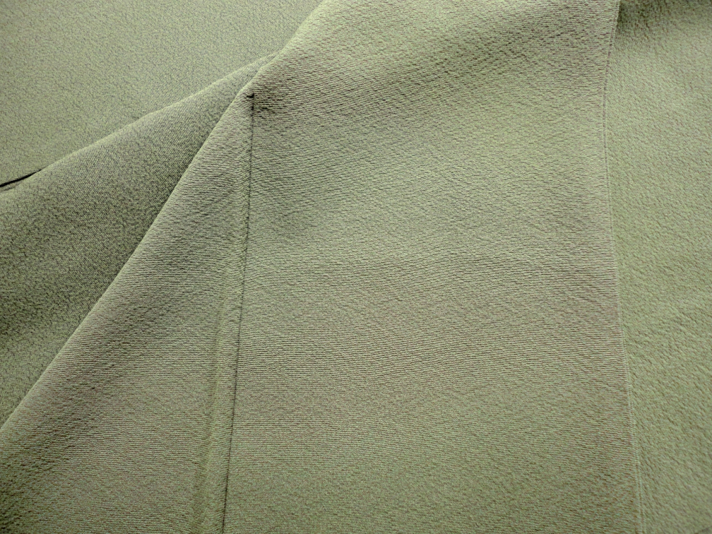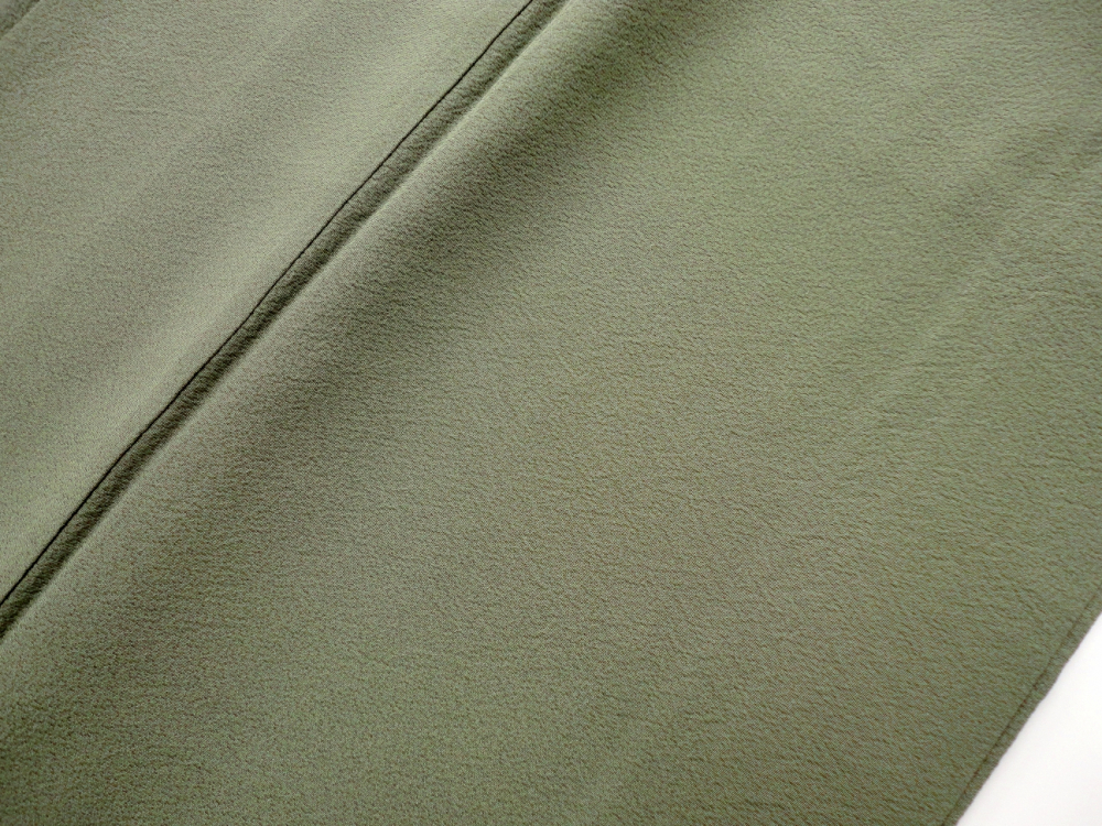 落ち着いた抹茶色ベース、しなやかで落ち感も綺麗な正絹地です。