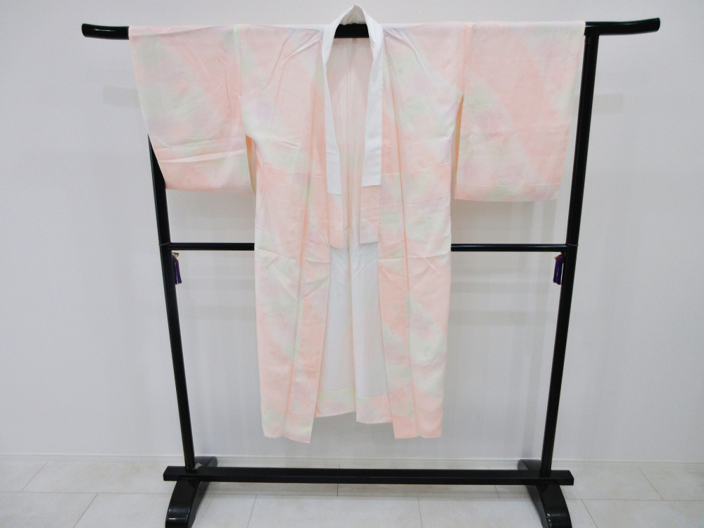 *雅星*良品!!ピンクオレンジ*ヱ霞 桜♪長襦袢 正絹 裄65.5丈132袖丈53 販売価格 9,800円 (税込) 購入数 \送料無料/ カートに入れる この商品について問い合わせる お気に入り 特定商取引法に基づく表記 商品詳細 状態ランク: ★★★ ●袷仕立て● 着物同様にすべてに裏がついた袷仕立て、 近頃は冬でも単衣長襦袢で通す方が多く、袷の襦袢を着る機会は少なくなりました。 昔ながらの形式を重んじる人や、寒い時に暖かく着物を着たい方には袷がおすすめです! するりとしなやかな手触りの正絹地。 ピンクオレンジをベースに、淡い緑や黄色のグラデーションが可愛らしい♪ 全体に施されたヱ霞や桜が上品◎ 半衿つき! 写真のように、シミ汚れがありますが目立ちません。 着物のみの価格で、帯・小物は含まれておりません。 サイズ・素材 裄 65.5cm 肩身丈 132cm 袖丈 53cm 袖幅 33cm 前幅 -cm 後ろ幅 30cm 内揚げ 19cm 縫込み(袖側) 1.5cm 縫込み(肩側) 1.5cm 素材 正絹 状態ランクについて ★★★★★ 超美品・新品・未使用品です。 ★★★★ 中古品ですがダメージの無いお品です。 ★★★ 薄ジミなどがありますが着用時には目立ちません。 ★★ 工夫次第で十分着用可能なお買い得品です ★ 大きめのシミがありますので、リメイク材料等にどうぞ。