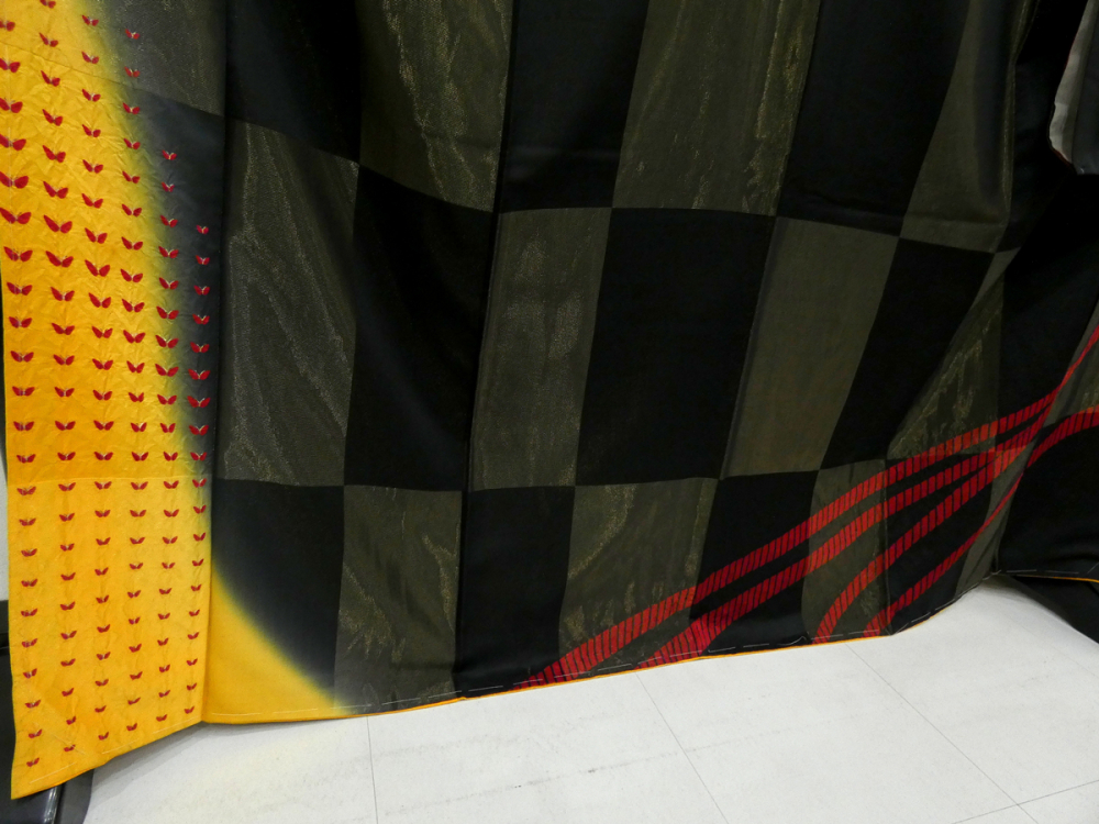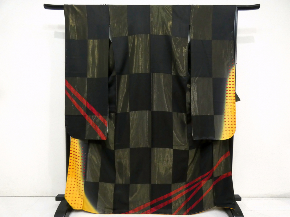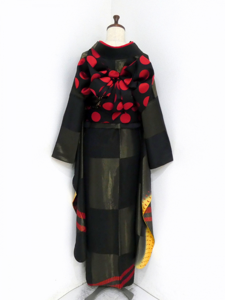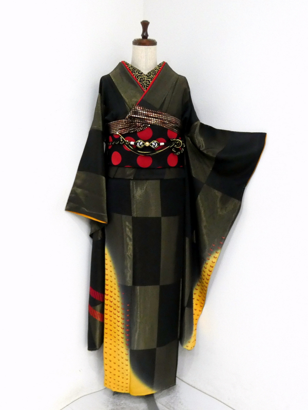 ◆雅星◆良品!!ブラック*縫い取り 絞り 斜め縞 蝶 振袖 正絹袷 裄67丈171ロング 販売価格 84,800円 (税込) 購入数 \送料無料/ カートに入れる この商品について問い合わせる お気に入り 特定商取引法に基づく表記 コーディネートで使用している商品 ◆雅星◆未使用超美!!黒×赤*ドット 正絹六通《洒落袋帯》 46,800円(税込) 商品詳細 状態ランク: ★★★ ブラックベース、金糸の縫い取りで表現された市松模様、 優しい光沢のあるずっしり上質な正絹地を使用しております。 絞りの斜め縞模様や、裾には蝶模様が染められ、クールな中に可愛らしさもあります。 成人のお祝いを華やかに彩ってくれる振袖です。 《袷・広衿》身長161〜174cm位までの方にオススメです。 しつけ付き、画像の様なシミ汚れやキズが見られますが、 着用時には目立ちにくいです。 ダメージの分お安くなっていますので、気にせずご着用いただける方、お買い得です♪ 着物のみの価格で、帯・小物は含まれておりません。 サイズ・素材 裄 67cm 肩身丈 171cm 袖丈 106cm 袖幅 34cm 前幅 24cm 後ろ幅 30cm 内揚げ 0cm 縫込み(袖側) 1cm 縫込み(肩側) 1cm 素材 正絹 状態ランクについて ★★★★★ 超美品・新品・未使用品です。 ★★★★ 中古品ですがダメージの無いお品です。 ★★★ 薄ジミなどがありますが着用時には目立ちません。 ★★ 工夫次第で十分着用可能なお買い得品です ★ 大きめのシミがありますので、リメイク材料等にどうぞ。 _furi _fo