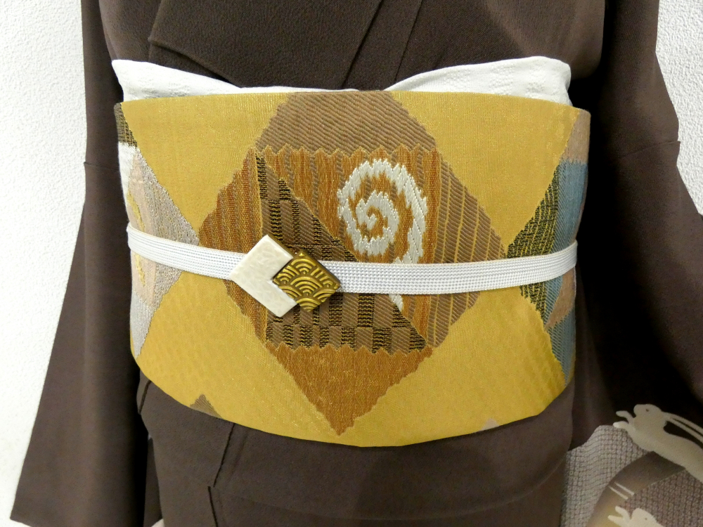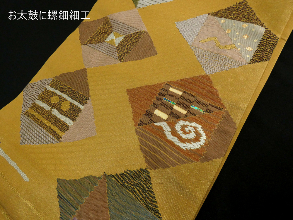 ◆雅星◆超美!!山吹茶色*箔織 螺鈿細工 幾何学 正絹《袋帯》 販売価格 36,800円 (税込) 購入数 \送料無料/ カートに入れる この商品について問い合わせる お気に入り 特定商取引法に基づく表記 商品詳細 状態ランク: ★★★★ くすんだ金色のような箔織ベース、 幾何学ダイヤ模様が織り出されて、お太鼓には螺鈿細工が施されています。 合わせるお着物を引き締めつつ、さりげなく格上げしてくれる袋帯です。 締め跡はありますが、目立つシミ・汚れのない綺麗なお品です。 帯のみの価格で、着物・小物は含まれておりません。 サイズ・素材 長さ 31cm×437cm 素材 正絹 状態ランクについて ★★★★★ 超美品・新品・未使用品です。 ★★★★ 中古品ですがダメージの無いお品です。 ★★★ 薄ジミなどがありますが着用時には目立ちません。 ★★ 工夫次第で十分着用可能なお買い得品です ★ 大きめのシミがありますので、リメイク材料等にどうぞ。 _fo